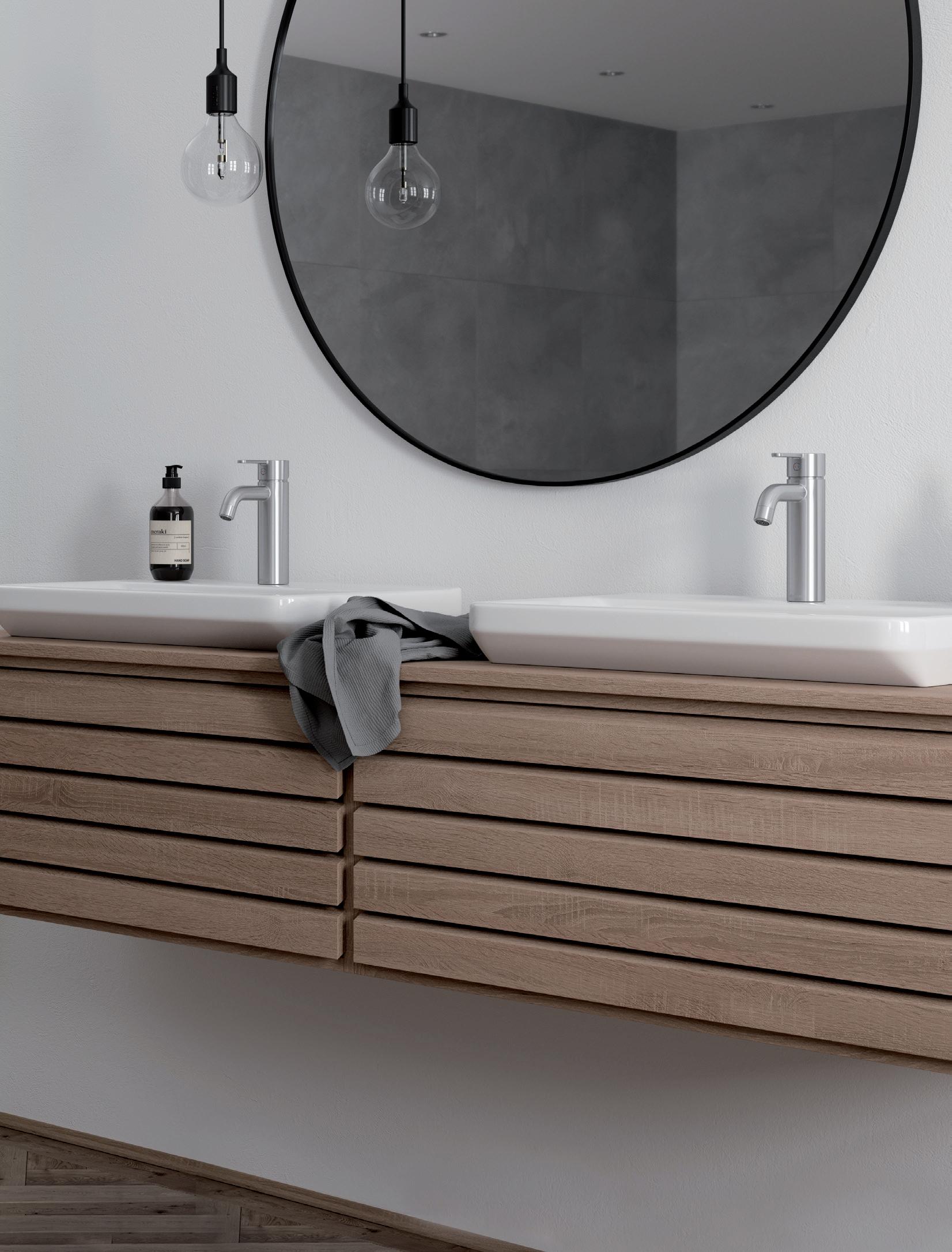 The Merkur series is available for both kitchens and bathrooms so that you can create a common design thread from room to room.