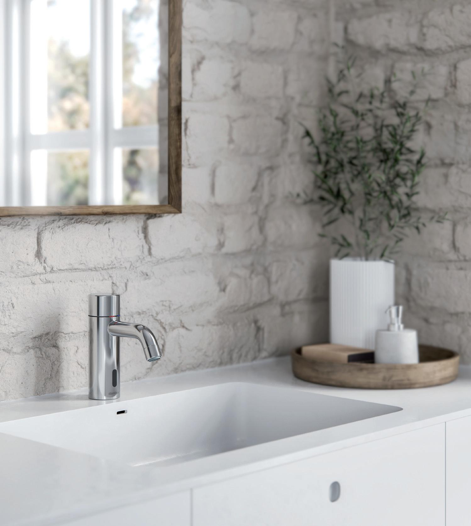 Silhouet Touchless is a revolution in touchless taps, designed specifically for home use. Stylish, practical and hygienic because you never have to touch the tap with dirty hands.You can easily adjust the temperature and flow depending on whether you need to wash your hands, brush your teeth, shave, or fill a glass with cold water.