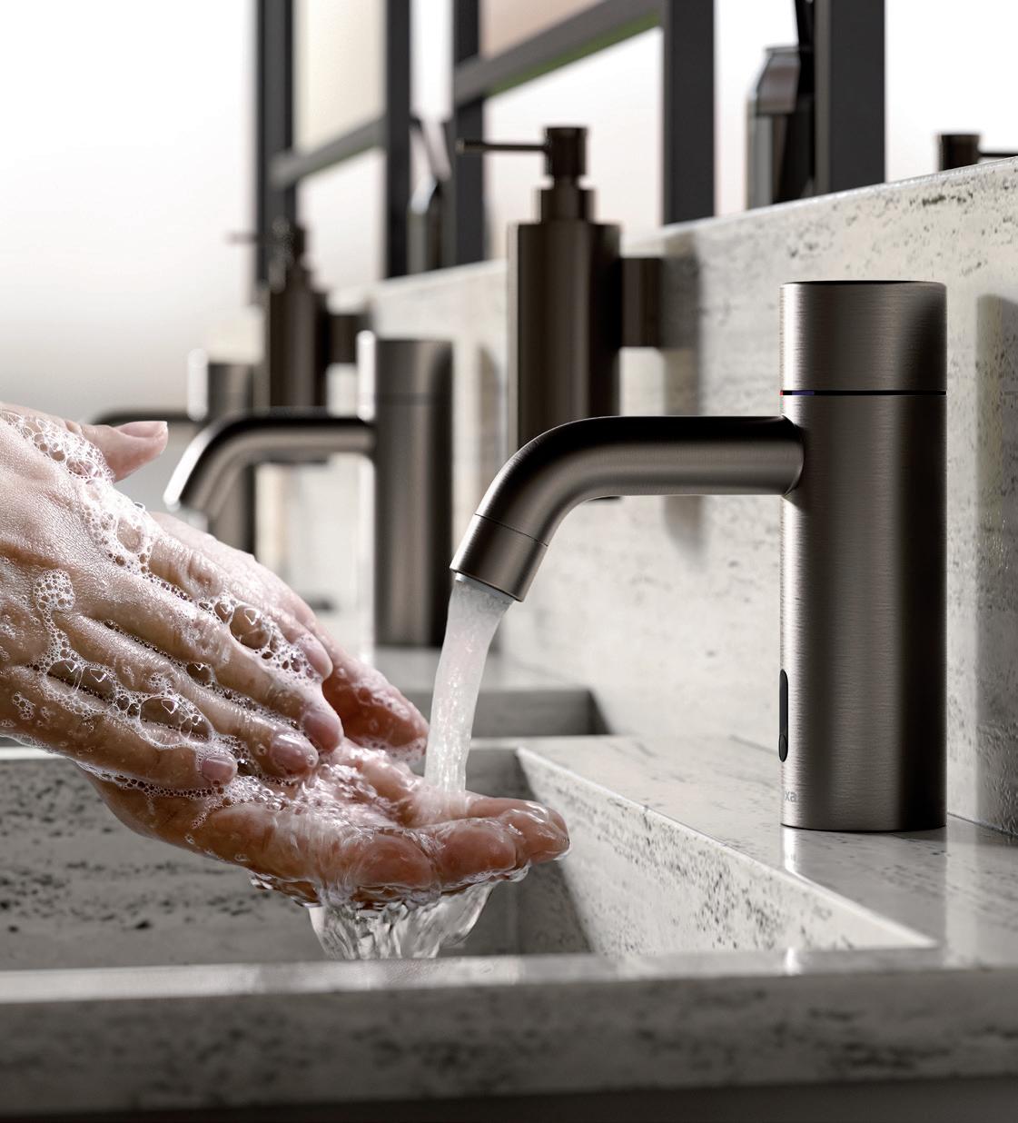 With Silhouet Touchless, we have succeeded in combining touchless technology with a user-friendly design, where the functional top can be used to control the flow of water and switch between hot and cold.