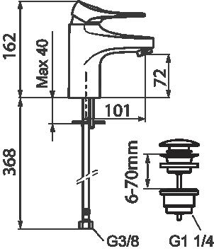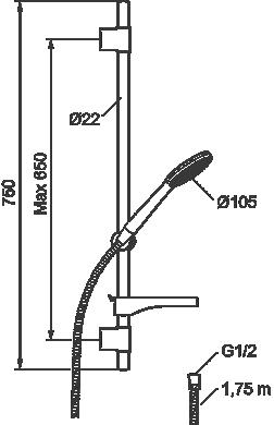 Fleksibelt vægbeslag med membran Vandforbrug max. 7 l/min.