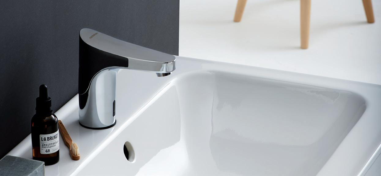 Vores FM Mattsson og Mora kar- og bruserbatterier har Eco Plus volumebegrænsning som standard. Med Eco Plus skal du foretage et aktivt valg for at komme op på den fulde vandmængde. Du trykker knappen ind og drejer lidt på grebet, så kommer der mere vand ud. Men som udgangspunkt kommer der vand nok. På den måde sparer du både vand og skåner miljøet.