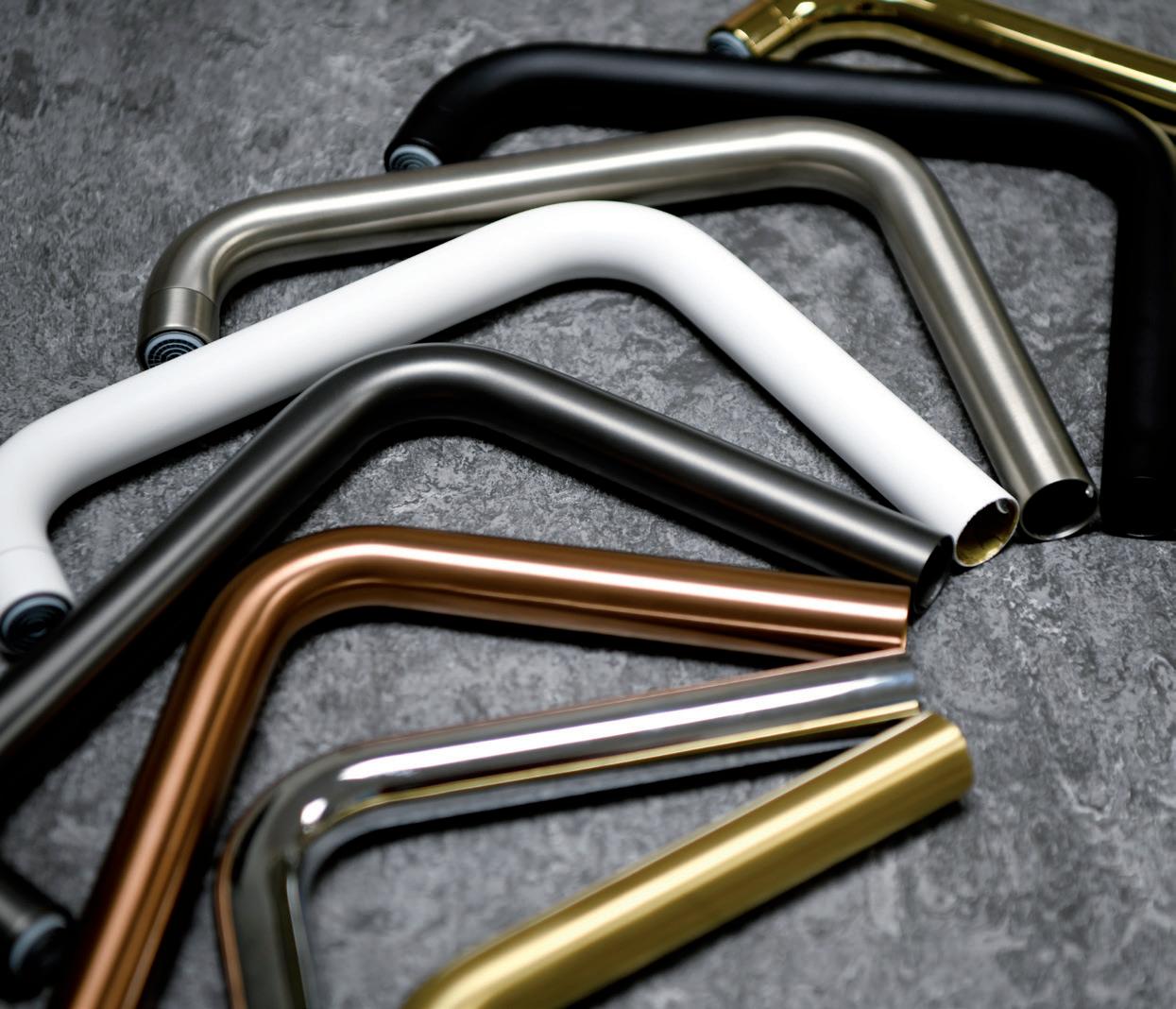 Samtlige overflader går igen i Damixas komplette sortiment, så du kan få alt fra vandhaner til håndklædekroge i præcis samme farve. Således tapper Damixa altid ind i din unikke indretningsstil.