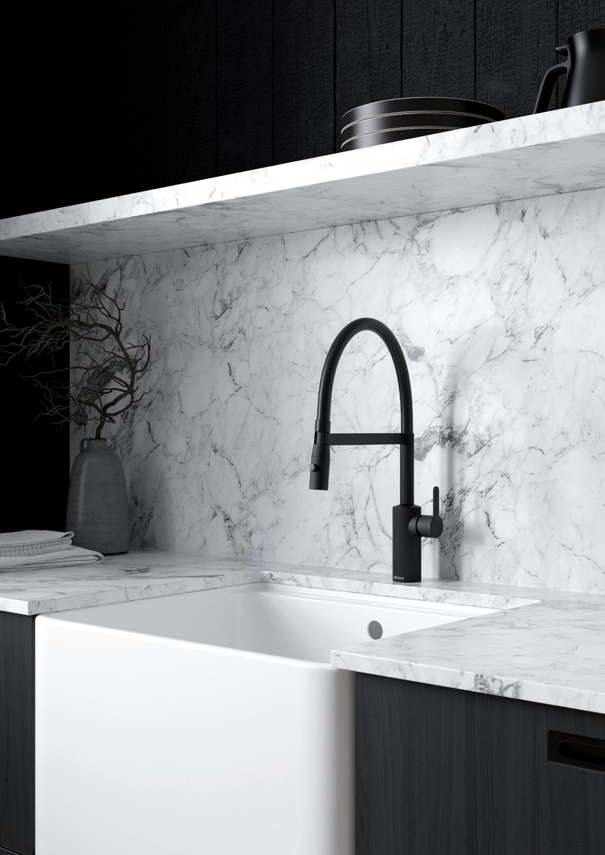 Weiß ist die Farbe neuer Anfänge. Und weiße Armaturen sind eine Innovation, bei der die Farbe in sehr einfachen Designs vollends zur Geltung kommt. Es ist die ideale Wahl zur Ergänzung heller Küchen oder Badezimmer. Oder um einen Kontrast zu farbigen Oberflächen zu schaffen. Die seidenmatte Oberfläche fühlt sich angenehm an, ist widerstandsfähig und dank einer speziellen Behandlung überraschend leicht sauber und strahlend weiß zu halten.