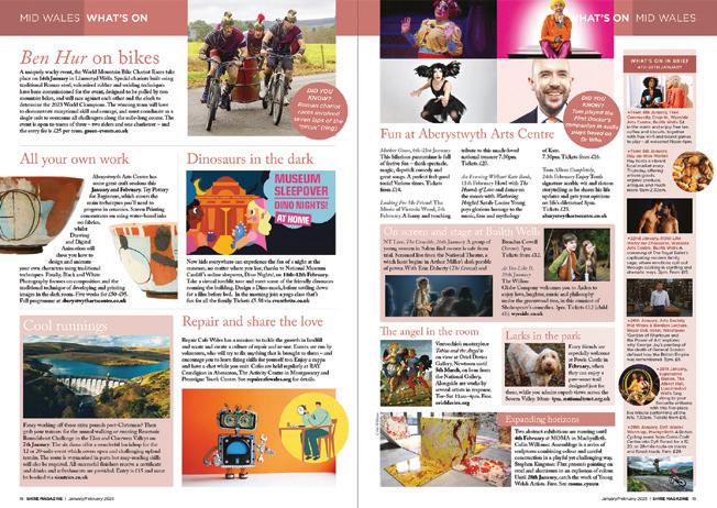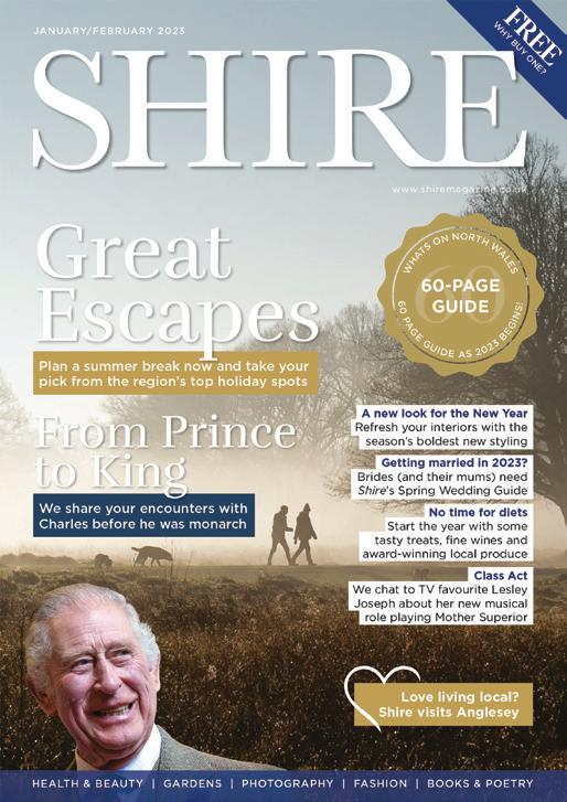 FREEWHYBUYONE? www.shiremagazine.co.uk JANUARY/FEBRUARY 2023 HEALTH & BEAUTY | GARDENS | PHOTOGRAPHY | FASHION | BOOKS & POETRY SHROPSHIRE & MID WALES WHATSONSHROPS & MIDWALES60 60 PAGEGUIDE AS 2023BEGINS ! 60-PAGE GUIDE Love living local? Shire visits Ludlow A new look for the New Year Refresh your interiors with the season’s boldest new styling Getting married in 2023? Brides (and their mums) need Shire’s Spring Wedding Guide No time for diets Start the year with some tasty treats, fine wines and award-winning local produce Class Act We chat to TV favourite Lesley Joseph about her new musical role playing Mother Superior We share your encounters with Charles before he was monarch From Prince to King Plan a summer break now and take your pick from the region’s top holiday spots Great Escapes