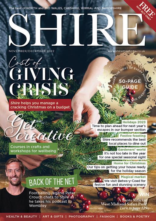 GET IN TOUCH! We want to hear from you… TURN TO PAGE 41 for our fantastic subscription o er A free copy of Shire delivered to your door! If you’re having trouble getting to the supermarket and would prefer your copy delivered to you at home, just send us an A4 sae with £2 postage to Shire Magazine, PO Box 276, Oswestry, Shropshire SY10 1FR. We’ll send you the latest issue by return. WELCOME, DEAR READER… IN THIS ISSUE Publisher Dan Bromage Editor Kate Speedie Chief Subeditor Wendy Reed Sta Writers Juliet Davies Lynda Kenny Sarah Waterfall Designers Ella Knight Meryl McIntosh Advertising Design Andy Beavis Sales & Marketing Pauline Jones Claire Evans Distribution Manager Paul Howard Finance & Accounts David Kynaston Nicky Kynaston Jane Osman Contributors Holly Johnson, John Hargreaves, Gloria Mans, P Parker, Helen Cooke, Bob Hickman, Lisa Whelan, Adam Gaunt-Evans, Eryl Jones, Adele Barry, Catherine Buckley, Alice Leetham, J McKinney Email Shire magazine editorial@shiremagazine.co.uk advertising@shiremagazine.co.uk Shire Magazine PO Box 276 Oswestry Shropshire SY10 1FR Tel: 01691 661270 SUBSCRIPTION RATES ONE YEAR – £19.95 TWO YEARS – £34.95 shiremagazine.co.uk SHIRE MAGAZINE is published bi-monthly by Superstar Publishing Ltd. Every e ort is made to ensure that the information and advice contained in these articles is correct and appropriate, but no liability or responsibility for loss or damage to any person acting or refraining from action in reliance on or as a result of anything omitted from such articles can be, or is accepted by, the authors, the publishers, their employees or any other persons connected with Superstar Publishing Ltd. Views expressed by contributors to Shire magazine are not necessarily those of the magazine or of Superstar Publishing Ltd and should be attributed to the authors concerned. Save as expressively permitted by law no part of this publication may be reproduced or transmitted in any form or by any means without the prior written authority of the Publisher, acting for Shire magazine. Privacy Policy published online at shiremagazine.co.uk © 2023 Superstar Publishing Ltd, all rights reserved. Registered Number: 10604188. Print ISSN 2514-3913 Online ISSN 2514-3921 WHO’S THE NEW GUY IN THE OFFICE? You give us the lowdown January/February 2023 | SHIRE MAGAZINE 3