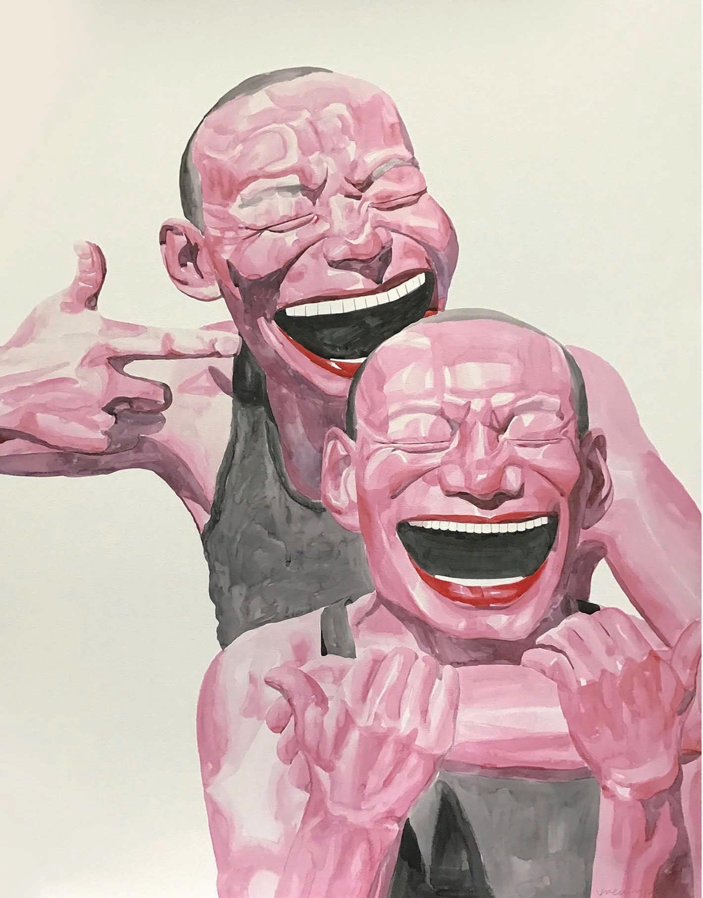 Las variadas manifestaciones humorísticas se multiplican, con lo cual la risa china se ensancha dentro del extenso país y trasciende sus fronteras. El artista Yue Minjun, cuya obra se caracteriza por car cajadas congeladas que pinta en sus cuadros, sostiene que “la risa es un arma revolucionaria para combatir la indiferencia”, muestra así una mirada sobre el humor que se escapa de lo estrictamente chistoso y adopta una perspectiva que llama a la reflexión profunda sobre la realidad. Este fundamento del “sentido del humor” quizás sea el punto de contacto más fuerte del humorismo en occidente y en oriente, más allá de las barreras idiomáticas que estén presentes en las manifestaciones particulares.