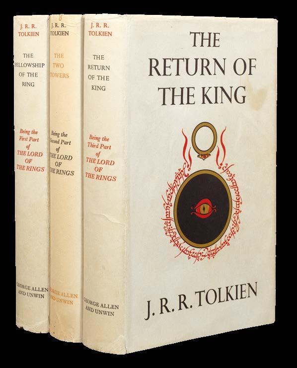 The early twentieth century spawned many such worlds: Tolkien’s creations are represented here by two editions of ‘The Hobbit’ (items 39 & 40), a first edition ‘The Lord of the Rings’ (item 45), ‘The Silmarillion’ (item 58), and the first unified mapping of Middle Earth by Pauline Baynes (item 50). Fellow “Inkling” C.S. Lewis’s world of the ‘Chronicles of Narnia’ may be the most “complete” fantasy world, and first editions of all seven books are available at item 42, with the Baynes unified poster – matching that of Middle Earth – as item 51. Later, sometimes more nuanced, efforts in worldbuilding include Frank Herbert’s ‘Dune’ (item 48), Ursula Le Guin’s ‘Earthsea’ (item 49), and, of course, ‘The Game of Thrones’ (items 64 & 65). Worlds are constructed for younger readers in the stories of Tove Jansson’s ‘Moomintroll’ (item 44); Reverend Awdry’s ‘Thomas the Tank Engine’ (item 46); and ‘Asterix’ (item 47).