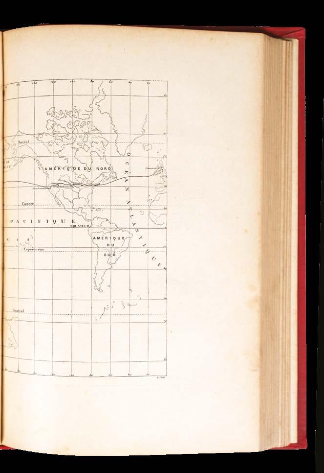 Sometimes setting himself as the fictitious “mapmaker” of his works, the master of cartographic fiction is surely Jules Verne. His maps – part mental navigational tool, part rhetorical device – pepper his monumental ‘Les Voyages Extraordinaires’ - all 65 works of which are illustrated with some 42 maps in 47 volumes in spectacular polychrome cartonnage bindings – are here as item 14. The fictional map, however, reached its apogee with Robert Louis Stevenson’s ‘Treasure Island’ where “The map was the most of the plot” (item 17). Who doesn’t want to be a pirate?