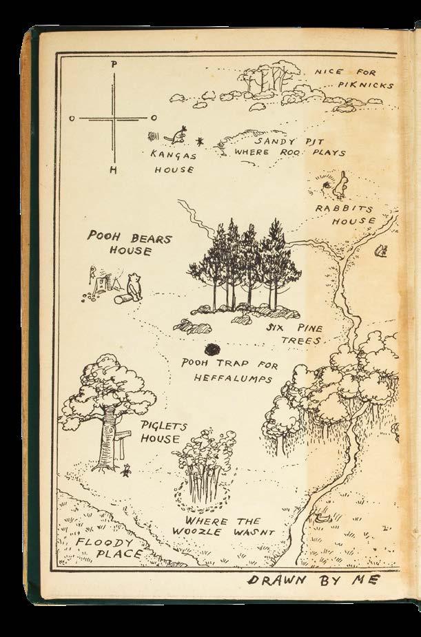 Once the genie was out of the bottle, however, secondary worlds and minds proliferated, and fictional maps adorned the endpapers of places as far afield as ‘Fairyland’ (items 27, 30, & 38); ‘The Land of Make Believe’ (item 33); and ‘Oz’ (items 28 & 29), while anthropomorphic creatures began to tell their own stories in the worlds of the ‘One Hundred Acre Wood’ (32); ‘Wind in the Willows’ (item 35); and ‘Watership Down’ (items 52 & 53).