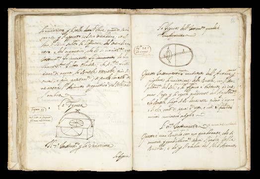 Original working autograph and holograph manuscript, in Italian, illustrated throughout with diagrams, and drawings of instruments, on seventeenth-century Italian paper, with various watermarks including a Sun (similar to Heawood 3893) and a Medici Coat-of-Arms (similar to Heawood 786), extensively revised at the time, some pages edited with pasteovers, others excised; early drab Italian stiff paper wrappers, stabbed and sewn as issued.