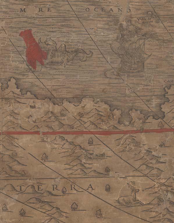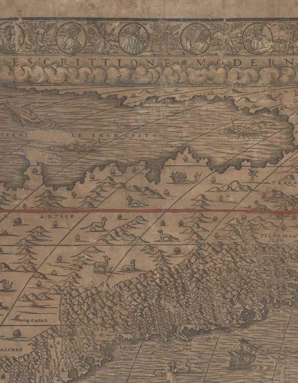 Were it unscathed, ‘L’Universal Descrittione Moderna d[el] Mondo’ would also be the first map to show and to name Gastaldi’s most enduring cartographic invention, the Strait of Anian.