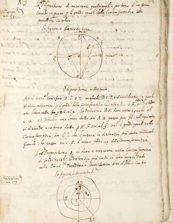 An astonishing survival: a working manuscript, seemingly specifically assembled for the eyes and instruction of the officers of the Tuscan Navy, the Knights of St. Stefano, rather than for a public audience. This suggestion is borne out by the wording of the first title for the work that Dudley has crossed out (page 2): ‘Compendio del Direttorio Marittimo: Il pr[im]o Tomo e intilato, Supplemento della Navigare. Nel pr[im]o libro si discorre dell ‘arte, piu Curiosa di Navigare...’.