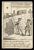 Large aquatint and etched engraving, on two sheets joined, unfolded and uncut, with the LVG watermark, together with, pamphlet, quarto (280 by 230mm), original blue wrappers, typographic title, pp. 5-(12), there are no pages 3-4 which agrees with the John Carter Brown example.