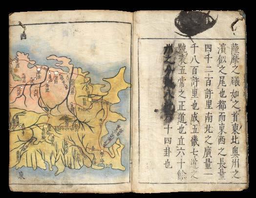 Even though the current, and only known, example, of ‘L’Universal Descrittione Moderna d[el] Mondo’, is severely damaged, particularly at the outer edges, it is possible just to see that there is a continuous, definitive, and distinctive western coastline to the northern region of North America. The ‘Golfo di [C]hienan’ is clearly visible, as is ‘[Mare] di Mangi’, and it is this cataloguer’s certain belief that the “Streito di Anian” would have appeared immediately above: making ‘L’Universal Descrittione Moderna d[el] Mondo’ the first map to show and name the Strait of Anian.