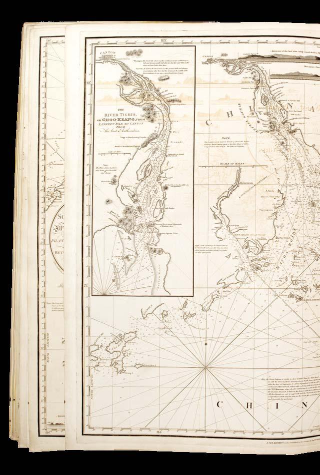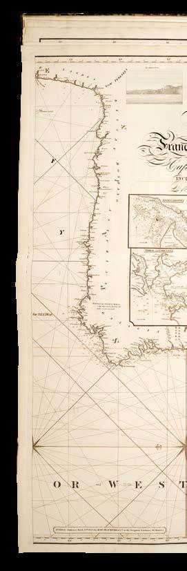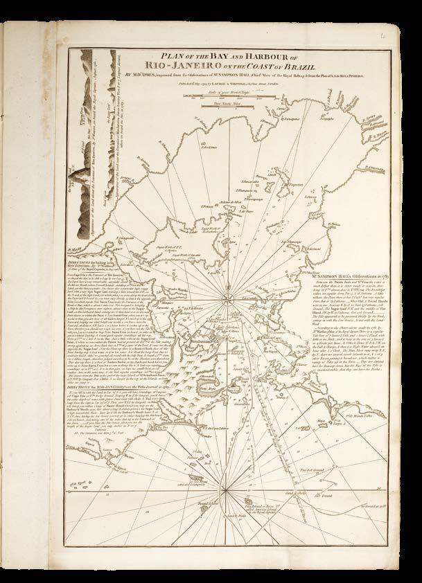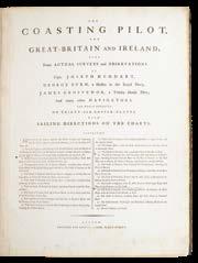 An extremely rare pilot, which extends from the English Channel to the Gold Coast of Africa. The maps themselves are based on earlier cartography: for example, the first chart of the English Channel, while the imprint is dated to 12 May 1800, names Thomas Jefferys (d1771) as the cartographer; and the second through to the fifth charts, while all dated 12 May 1794, name various cartographers, including Bellin, D’Apres de Mannevillette, and D’Anville, all of whom were already deceased.