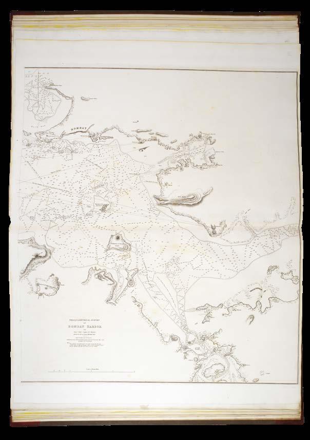 Dalrymple’s successors, Captain Thomas Hurd and William Parry, continued plans to complete a world sea survey and, by 1821, there were sufficient charts to warrant the first catalogue of Admiralty charts. In 1829, Sir Francis Beaufort, who developed the Beaufort Scale of wind strength, took over at the Hydrographic Office and initiated a period of prodigious activity: he sent surveyors all over the globe –William Fitzwilliam Owen to Africa, Robert Fitzroy to South America, and Sir Edward Belcher to China. By the end of Beaufort’s tenure, in 1855, the Hydrographic Office had produced 1437 charts in 113 surveys worldwide; an average of one a week. Beaufort also introduced standardized notation for charts and most of the charts produced by the Hydrographic Office delineated coastline as well as high and low water marks, and depth of water as established by soundings. In addition, these charts included information on shoals, reefs, and other navigational
