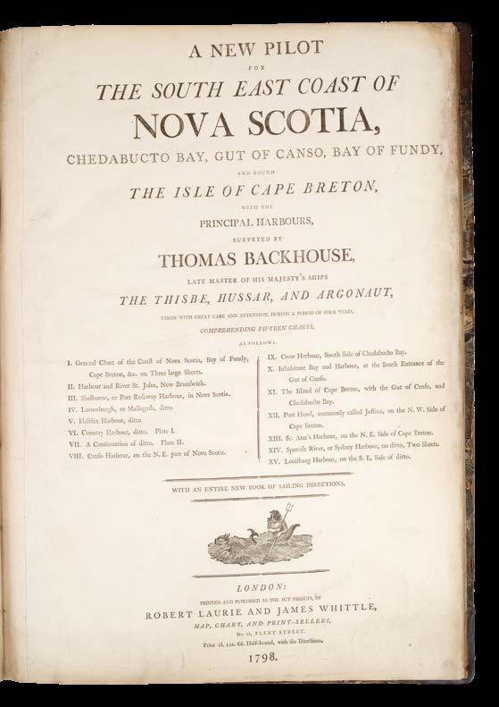 Extremely rare and important maritime atlas with an exceptional association. Laurie and Whittle’s 1798 publication of this atlas of the eastern coast of Nova Scotia is extremely significant. With the loss of the American colonies in the Revolutionary War, Britain required accurate hydrography for safe passage to support the loyalist communities that remained in what is now modern-day Canada.
