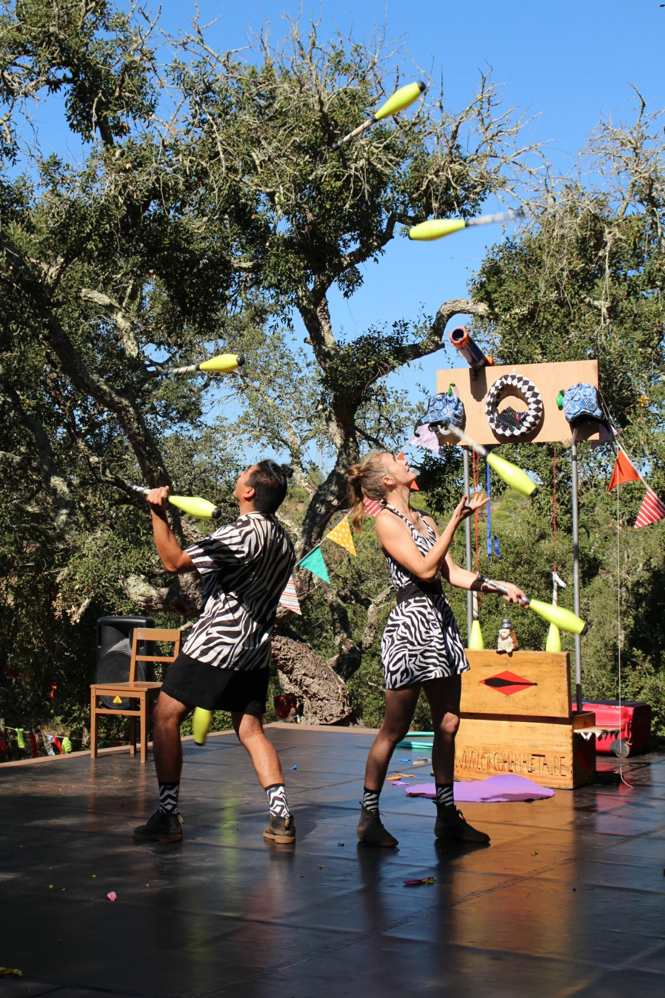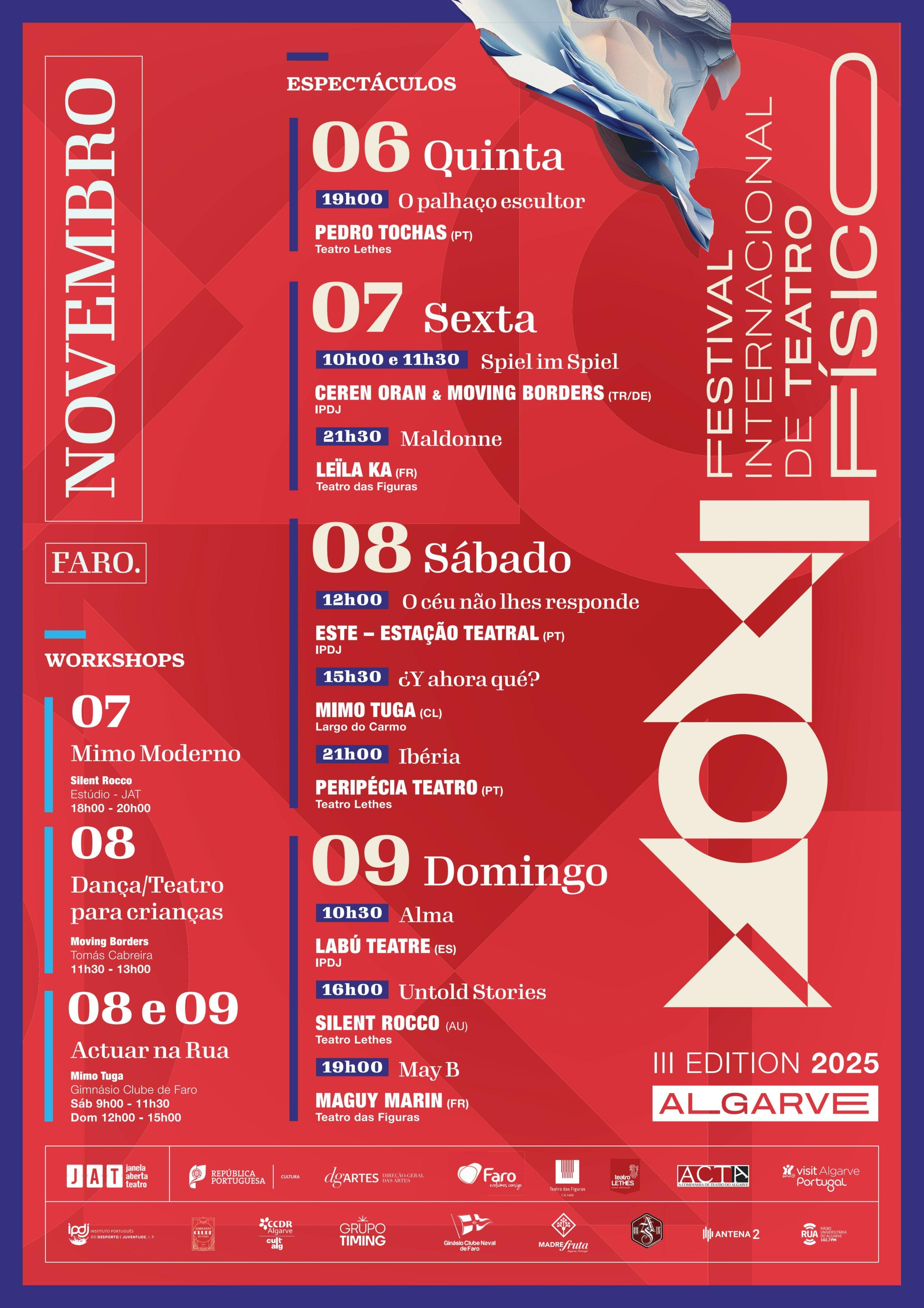 internacionais de circo contemporâneo e teatro físico, privilegiando espetáculos acessíveis e multilingues. Entre os destaques encontravam-se «Ça Va Péter», da companhia belga À La Maleta, que combina malabarismo, humor e interatividade num espetáculo explosivo; «Gustavo La Vita», do italiano Andrea Farnetani, um clown poético que reflete sobre a fragilidade e a alegria da vida; e «V.O.G.O.T.», da companhia Masawa de França, que explora os cinco sentidos. A programação contou ainda com a presença da Orquestra Ligeira de Lagos,