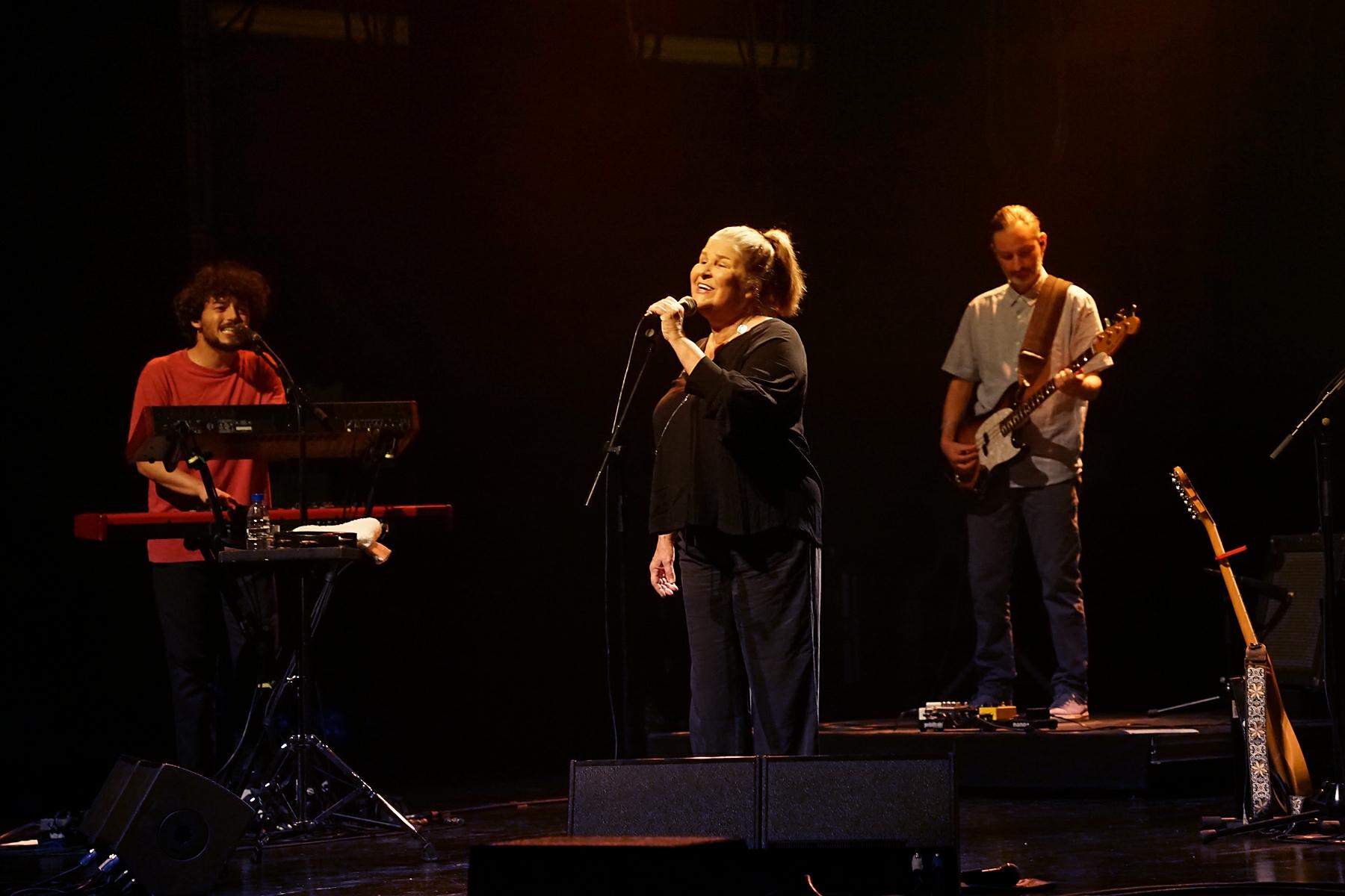 Acompanhada por Pedro da Silva Martins, Luís J. Martins, Nuno Prata, Catarina Falcão, Vicente Santos e Sérgio Nascimento, a cantora percorreu temas clássicos como «Sempre que o Amor me Quiser», «Dou-te um Doce» e «Demagogia», e apresentou canções recentes como «Desalmadamente», «Semente» e «Pop Toma». Num auditório completamente cheio, o público vibrou e cantou em uníssono, num ambiente de celebração e emoção. O ponto alto chegou no encore, com uma sentida versão acapela de «Estou Além», de António Variações, em tom de homenagem.
