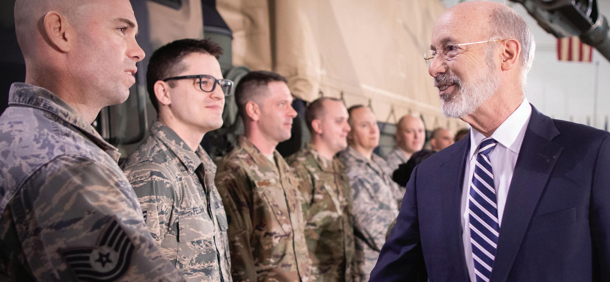 “The PA GI Bill is designed to show that we not only appreciate our Pa. National Guard members’ service, but that we also acknowledge their families’ support and sacrifice,” Gov. Wolf said during an event at Fort Indiantown Gap.Pa. Gov. Tom Wolf announced a new program in February that would provide education benefits to National Guard families. Photo courtesy of Gov. Wolf’s website.