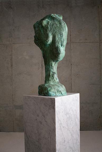 Minimalism grounds Reuther’s works, yet they possess an energy brought out in colorful and textured gestures. Earlier wooden sculptures of heads serve as a jumping off point for Reuther’s new bronze sculptures. Placed on marble pedestals, these textured works mirror round elements in her paintings, creating dialog between her two practices.