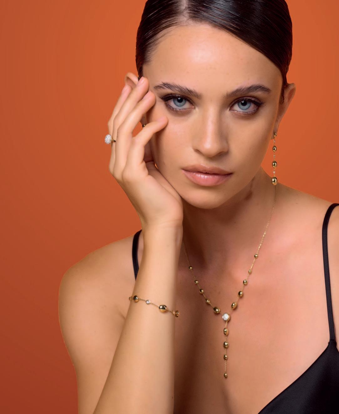 For example, the Marrakech collection, which premiered in the brand’s inaugural year of 2000, is comprised of sinuously sculpted golden “ribbons” that are formed using the brand-exclusive coil technique in which thin gold strands are wrapped around an inner core. Poetically embodying the wind-sculpted and ever-shifting forms of North Africa’s sand dunes, Marrakech jewels gleam with the golden warmth of desert sunlight made solid. Majestic in its minimalism, the Marrakech collection is classic and therefore ageless, as stylistically relevant today as when it premiered at the turn of the 21 st century. The Siviglia collection draws its spiritual spark from the Andalusian culture of Seville, Spain. In this incomparable city, ancient cobblestoned streets are alive with the presence of the past, and every late February through April, thousands of orange trees produce their fragrant azahar (orange blossoms), creating a perfumed paradise in the heart of the city. While the 18-karat yellow gold chains in the Siviglia range are interspersed with small hand-engraved baroque-shaped golden ovals that are inspired by Seville’s cobblestones, some Siviglia necklaces are also embellished with pavé diamonds, milky aquamarine or turquoise. Simple yet