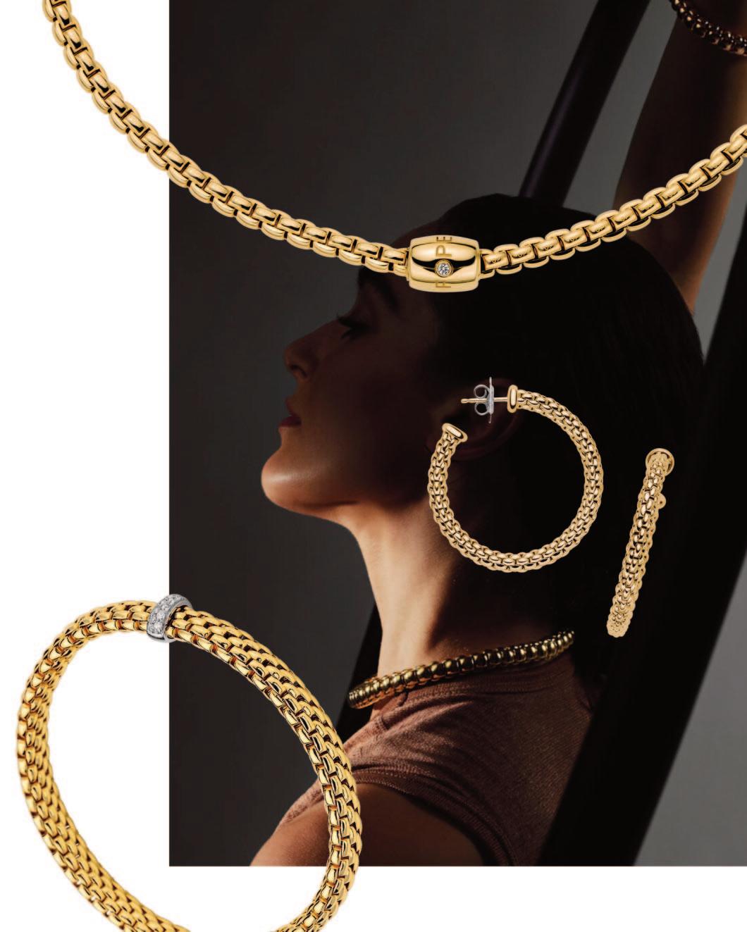 For example, the Marrakech collection, which premiered in the brand’s inaugural year of 2000, is comprised of sinuously sculpted golden “ribbons” that are formed using the brand-exclusive coil technique in which thin gold strands are wrapped around an inner core. Poetically embodying the wind-sculpted and ever-shifting forms of North Africa’s sand dunes, Marrakech jewels gleam with the golden warmth of desert sunlight made solid. Majestic in its minimalism, the Marrakech collection is classic and therefore ageless, as stylistically relevant today as when it premiered at the turn of the 21 st century. The Siviglia collection draws its spiritual spark from the Andalusian culture of Seville, Spain. In this incomparable city, ancient cobblestoned streets are alive with the presence of the past, and every late February through April, thousands of orange trees produce their fragrant azahar (orange blossoms), creating a perfumed paradise in the heart of the city. While the 18-karat yellow gold chains in the Siviglia range are interspersed with small hand-engraved baroque-shaped golden ovals that are inspired by Seville’s cobblestones, some Siviglia necklaces are also embellished with pavé diamonds, milky aquamarine or turquoise. Simple yet