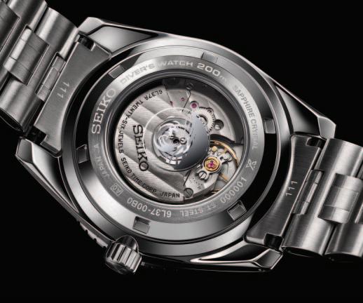 The new 6L Marinemaster series is a milestone in Seiko watch construction, featuring the first exhibition caseback on a Prospex diver’s watch. By reconsidering the case structure and using the slimline Caliber 6L37, Seiko created what is its thinnest mechanical diver’s watch (12.3mm), while adding a view of the finely-finished, high performance mechanical movement in action. The edges of the case and bezel are mirror-finished to prevent snagging and damage to the equipment used by divers, creating a brilliant appearance while improving functionality. The bracelet is designed with mirror-finished, ellipse-shaped links with dual-curved surfaces for the ultimate in comfort and wearability.