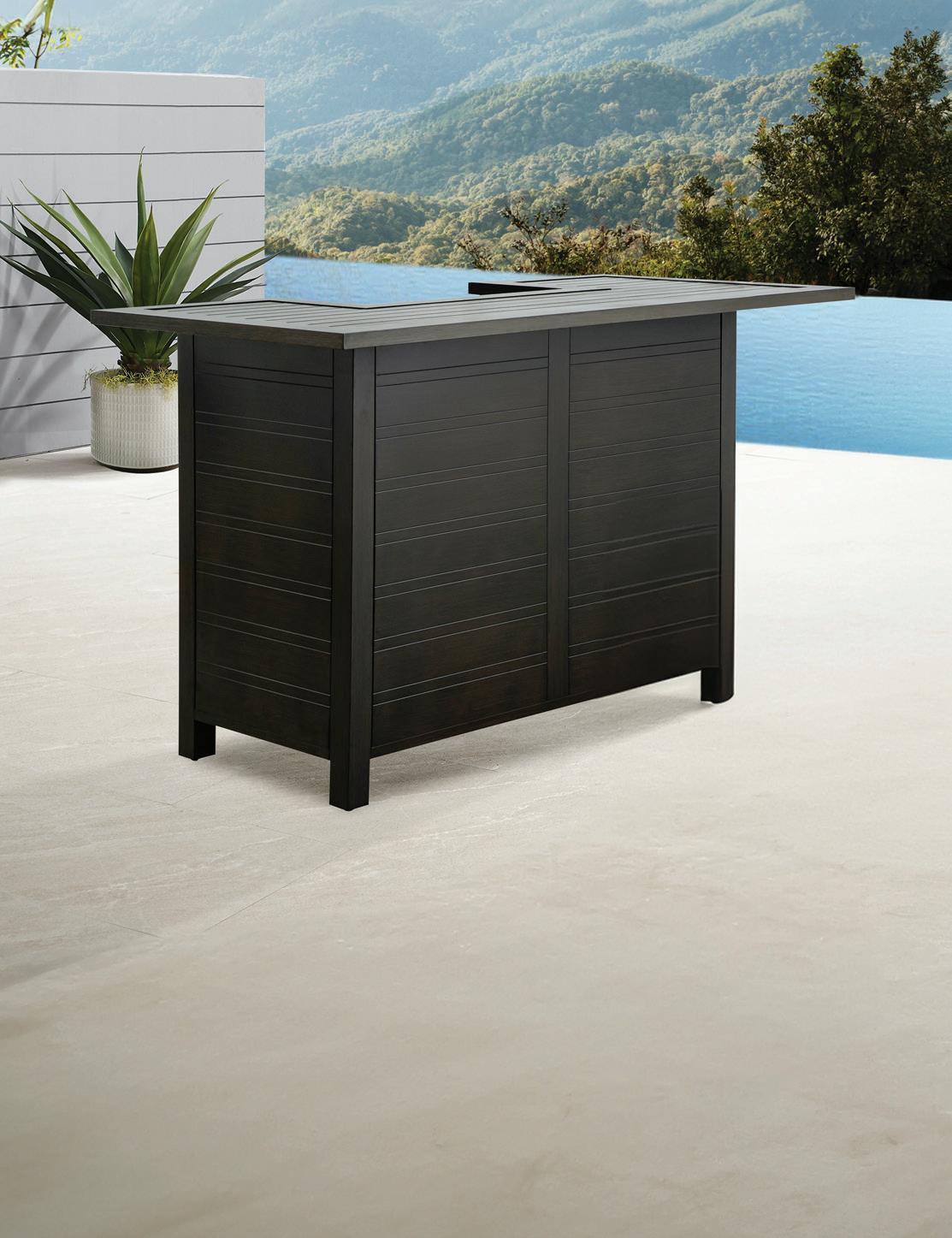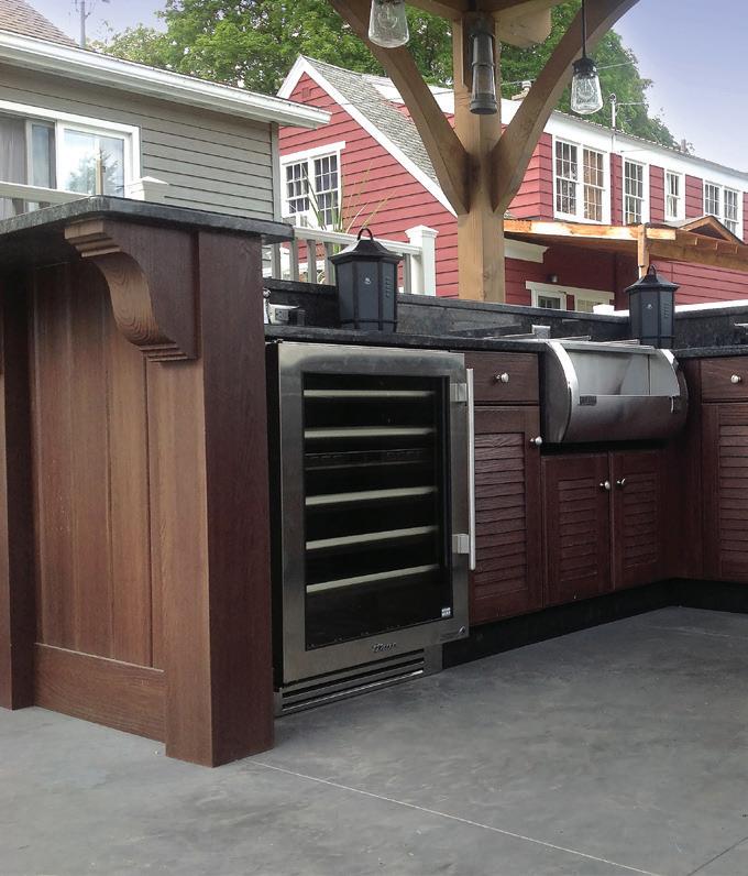 NatureKast's weather-resistant cabinets imitate wood using molded polyurethane doors and panels, hand-finished to bring indoor kitchen style outdoors.