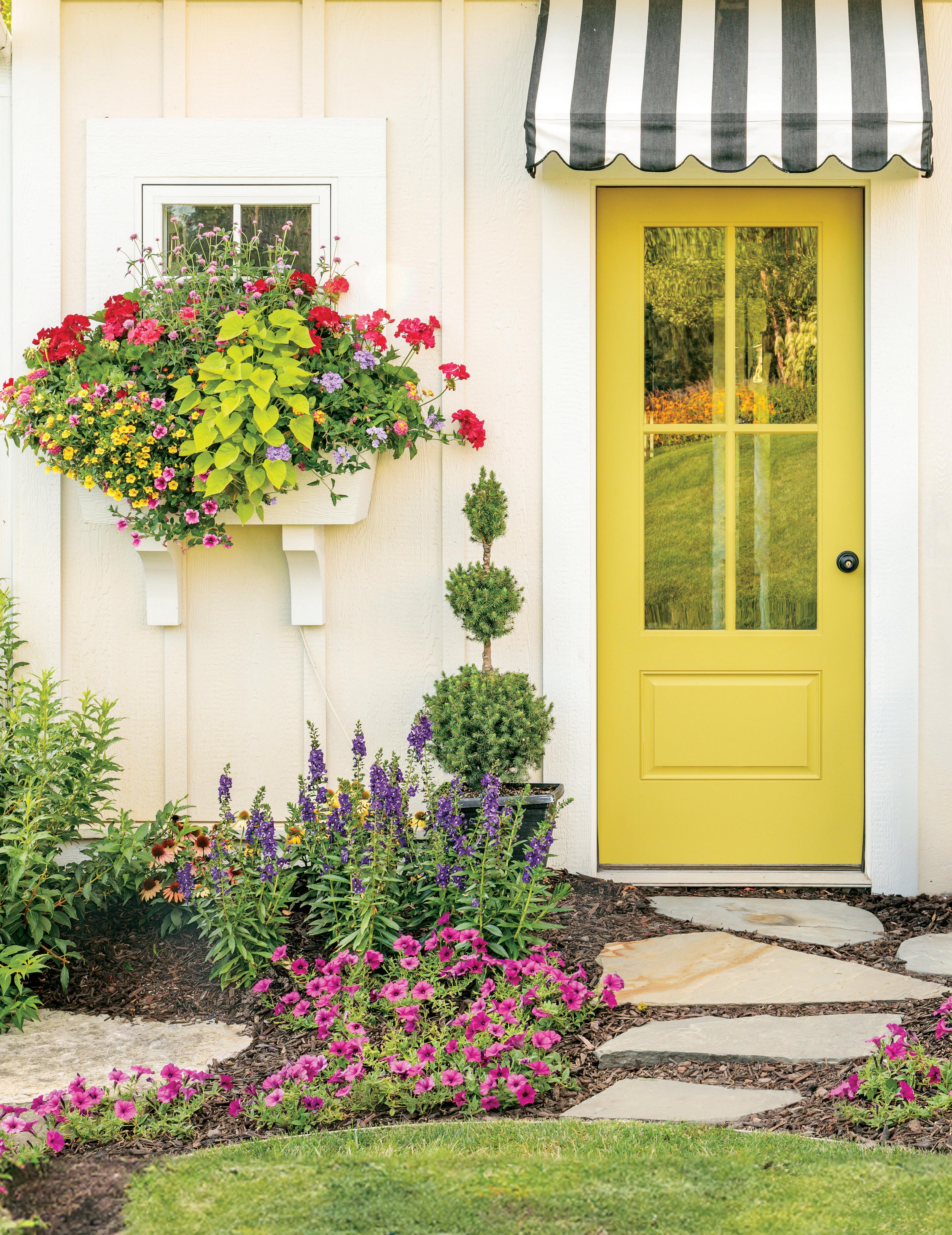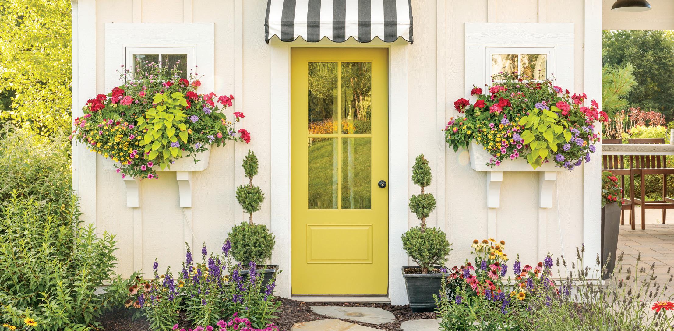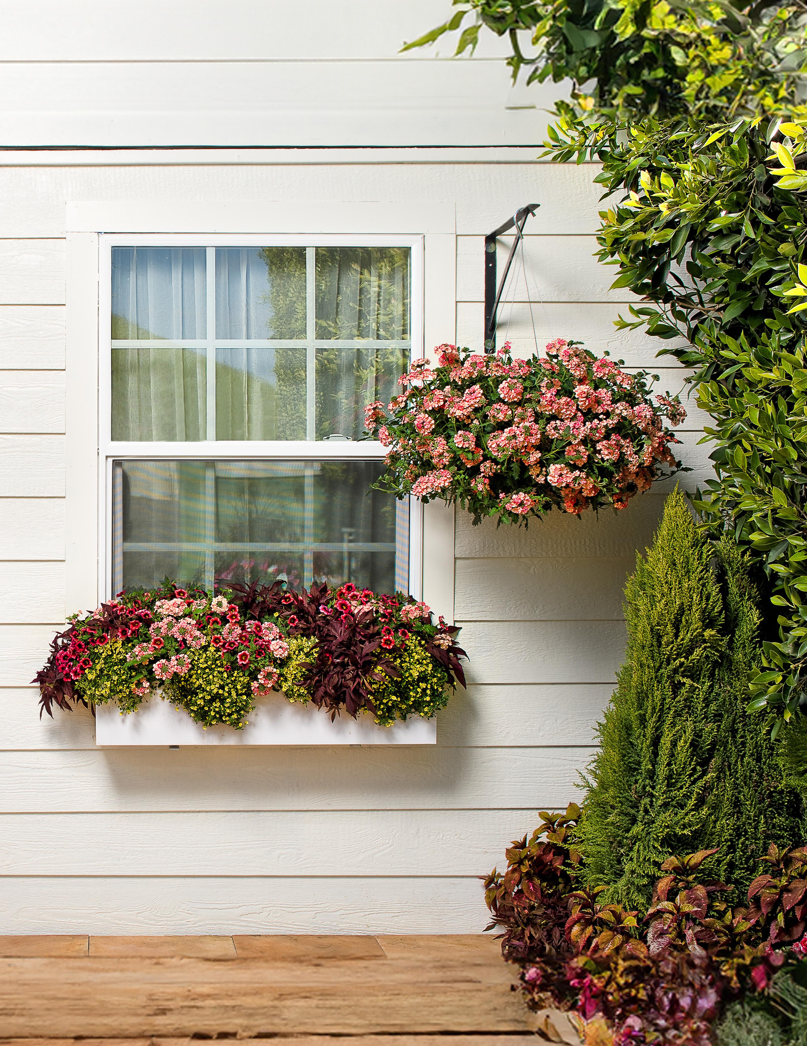 Featuring premium flowering annuals from Proven Winners in a window box or planting container of your choice. Add a fresh coat of paint for your front door, and viola — instant curb appeal!