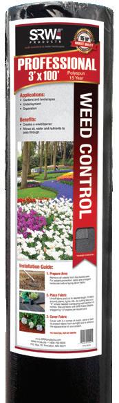 SRW spunbond fabrics are the professionals’ choice for landscape, weed control, and drainage projects. Polyspun fabric maximizes plant health by allowing air, water, and nutrients to pass through for weed control. Fabrics are available in 3', 4', and 6' widths and up to 300-ft sized rolls.