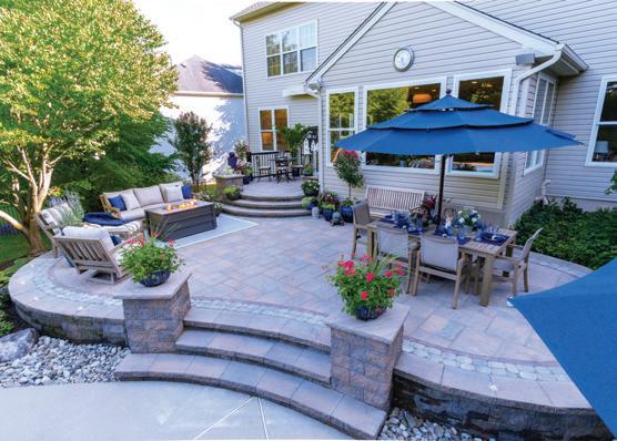 The design for John and Judy’s new patio by Gasper Landscape Designer, Nick Lupinacci, incorporated three different outdoor ‘rooms’ in the patio to mimic the corresponding rooms inside the house. By breaking down the larger patio into distinctive areas, each area feels more intimate without sacrificing the space and flow needed for when John and Judy are hosting their five kids and grandchildren.