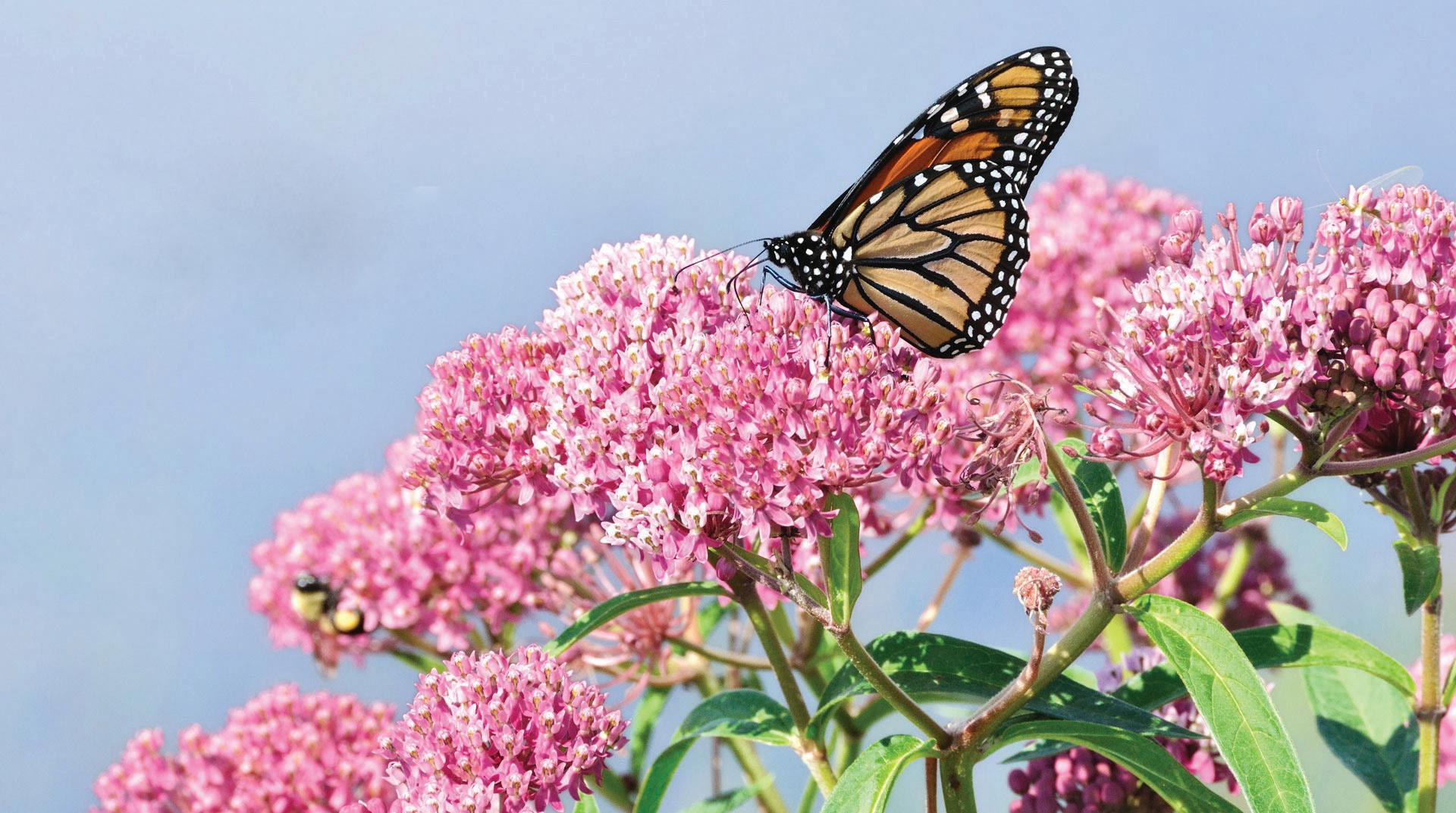For butterflies, incorporate a variety of plants that attract both caterpillars, as well as the adult butterflies, such as milkweed (Asclepias ssp.) species, which are the host plants for the beloved Monarch butterfly in its caterpillar stage.