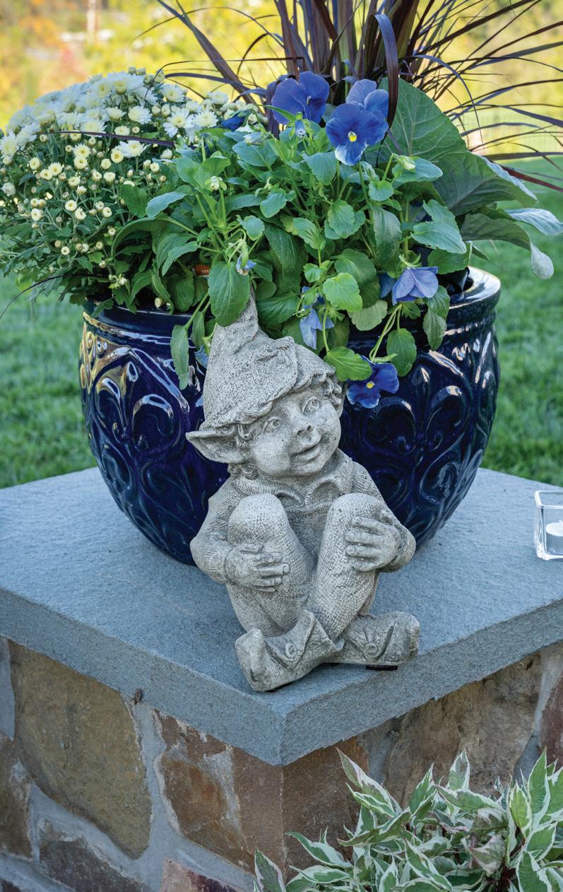 Piers make great spots to accent your walls with colorful planters or whimsical statuary such as this little cast stone elf.