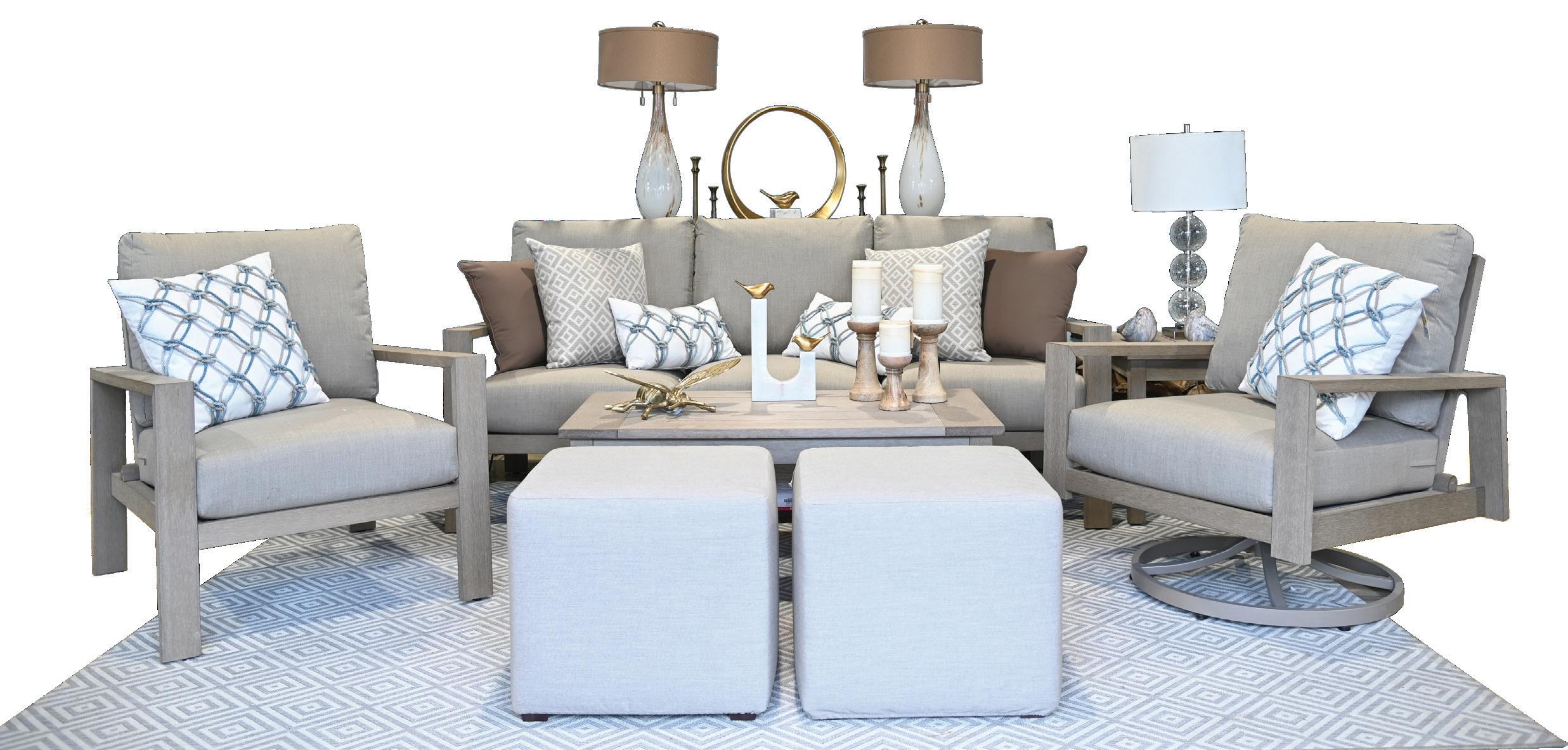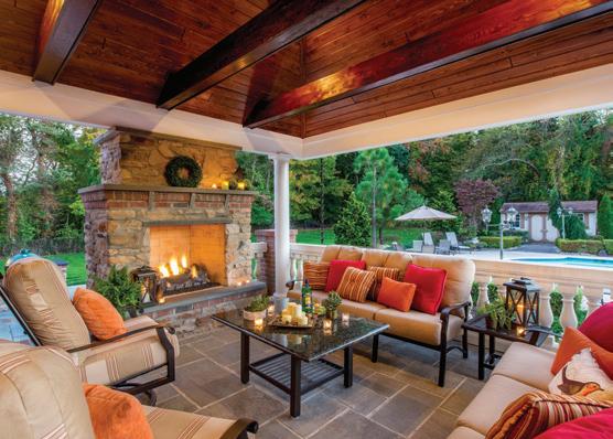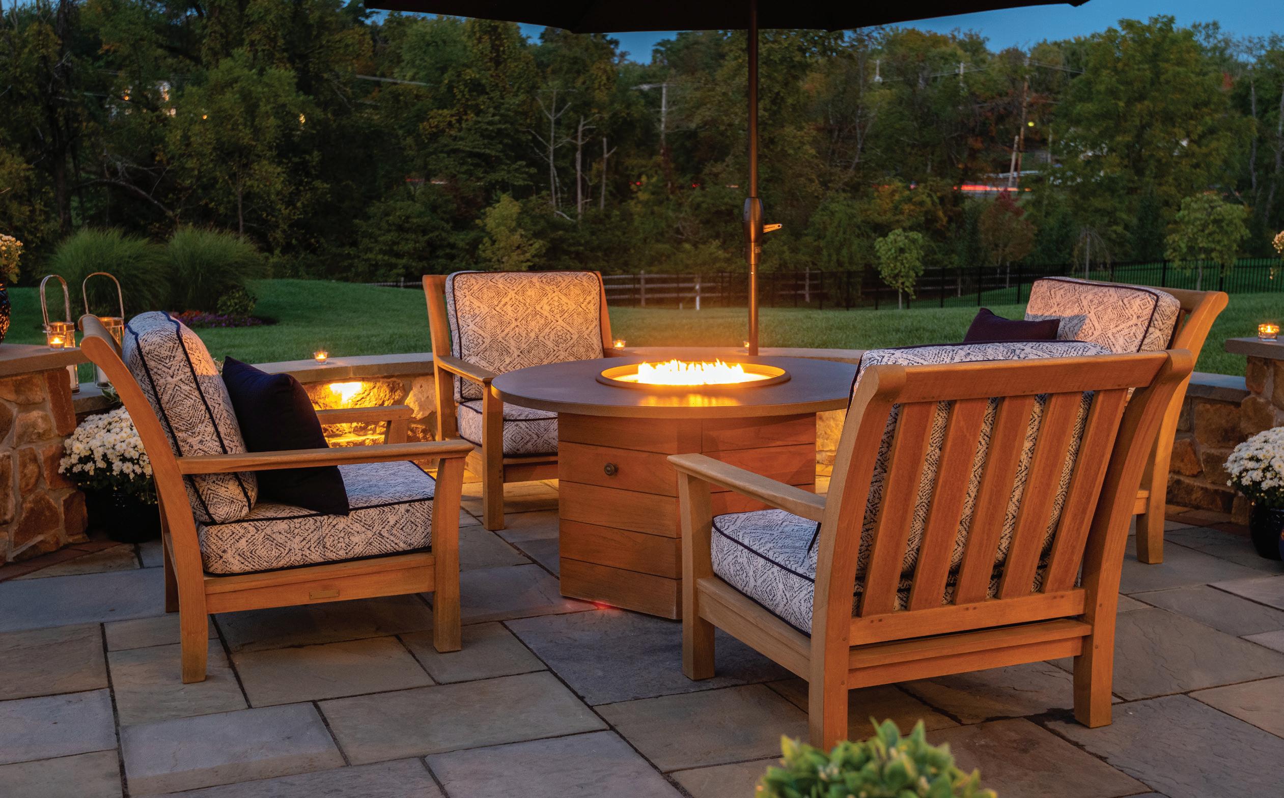 You want the same thing outside in a living room that you do inside the house--comfortable seating arranged to encourage good conversation and relaxation. A fire feature is like a powerful outdoor magnet; everyone will be drawn to it!