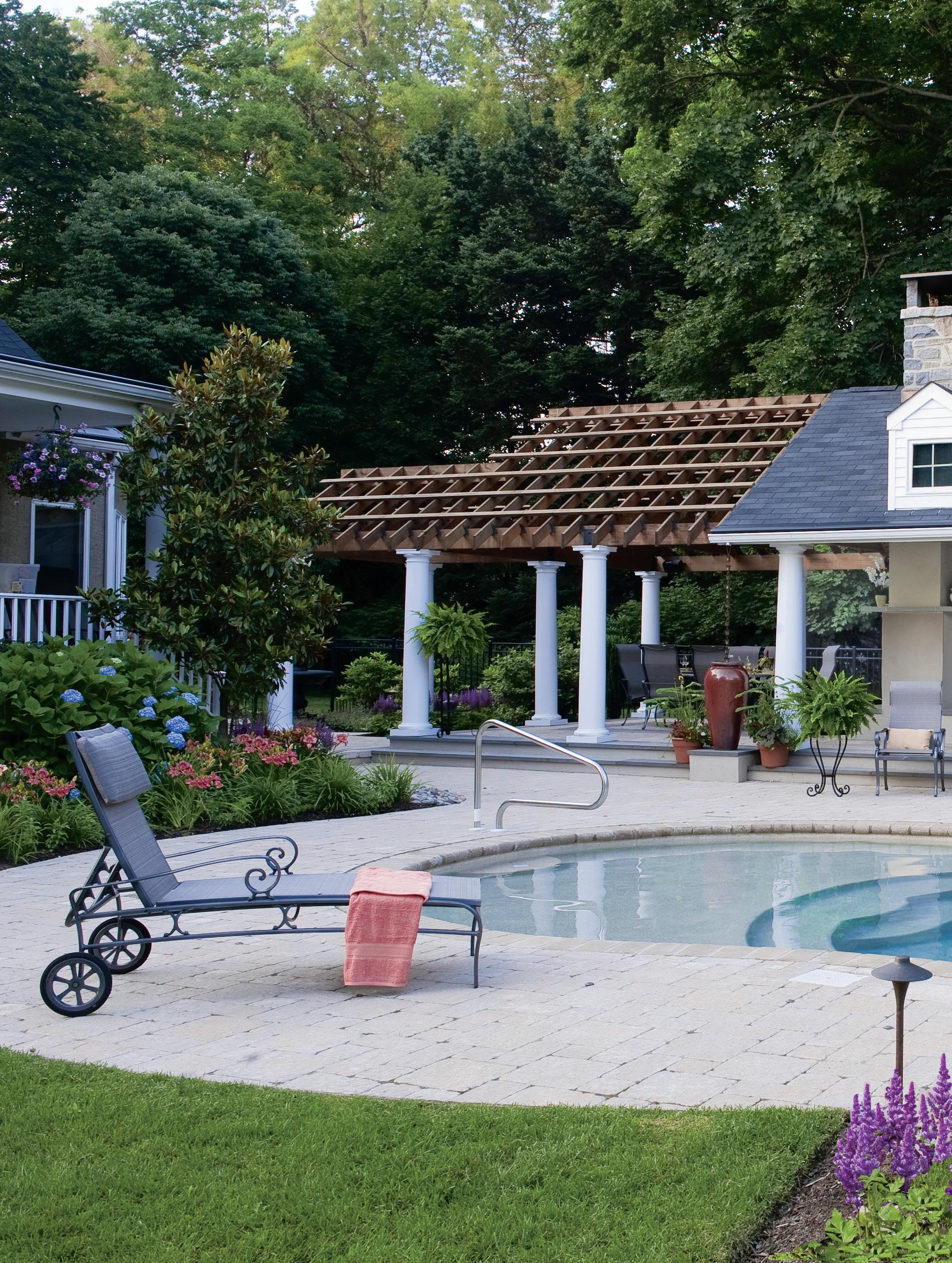 I was pleased to be asked to write the introduction to our first-ever Poolside Inspiration Edition. As a Gasper Sales Designer, I have the privilege of meeting many homeowners who require assistance with their pool projects. Whether they are seeking a design for a new pool, the renovation around an existing pool, or even the expansion or addition of a patio space around an existing pool patio, the process of pool design entails a lot of considerations. This includes deciding whether to locate it near the house or farther away in the yard. Also figuring out how to comply with pool fencing requirements in order to keep children safe around the pool, and whether you want to build accessory structures such as a pool house, pavilion, or outdoor kitchen. Fortunately, myself and the team of Gasper landscape designers have a wealth of experience that we utilize to help homeowners navigate the intricacies of pool design and pool codes. This results in the creation of wonderful pool-related outdoor spaces that you will see throughout this issue.