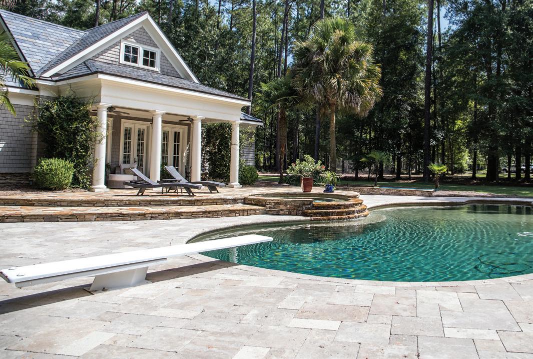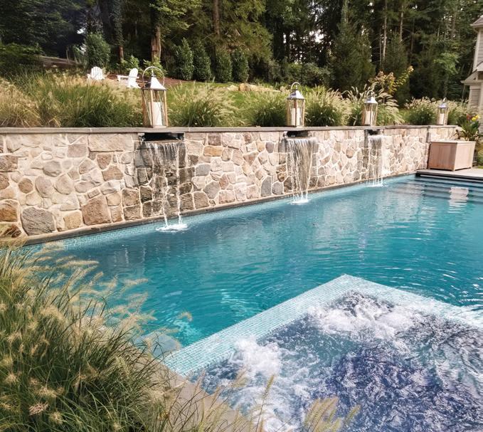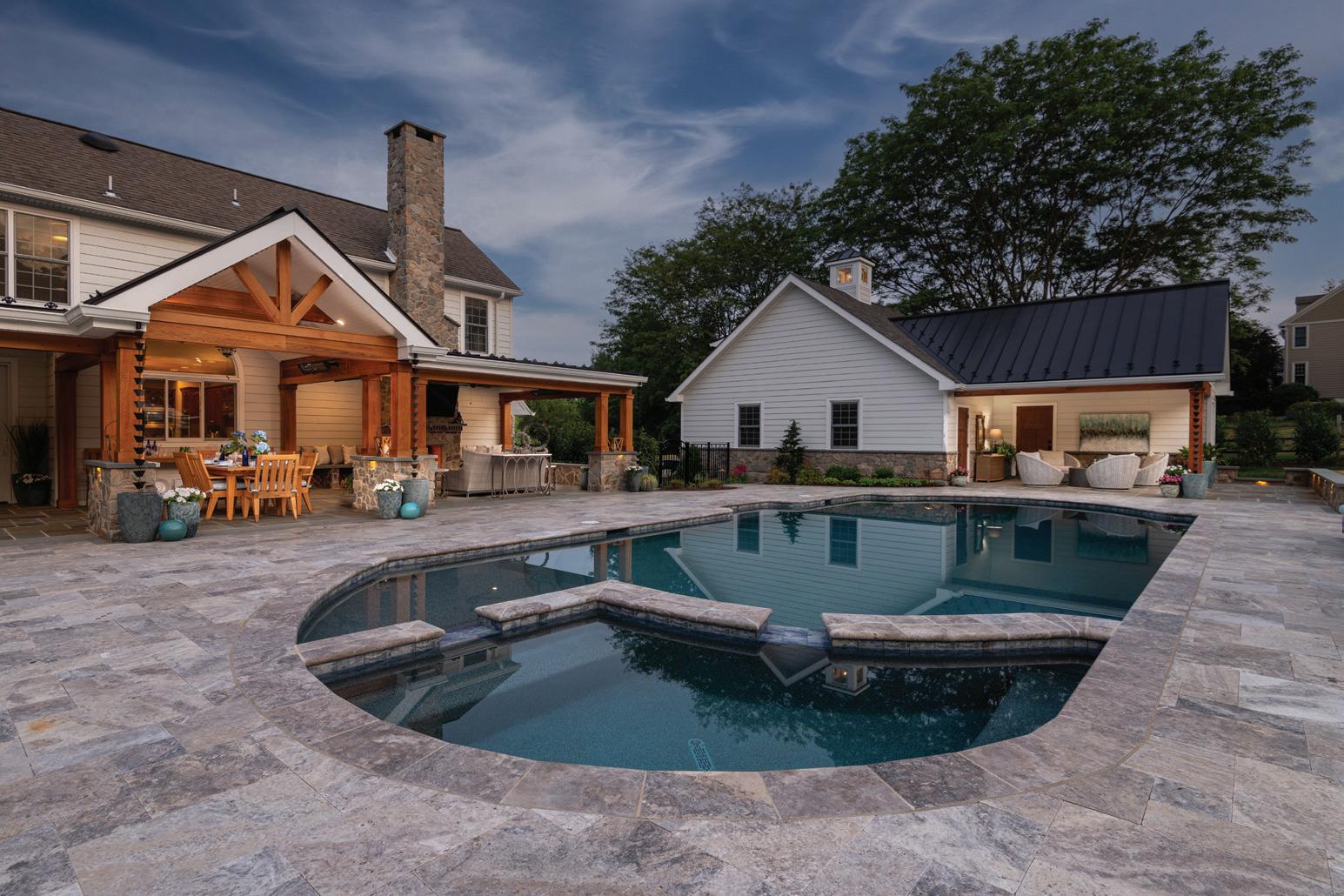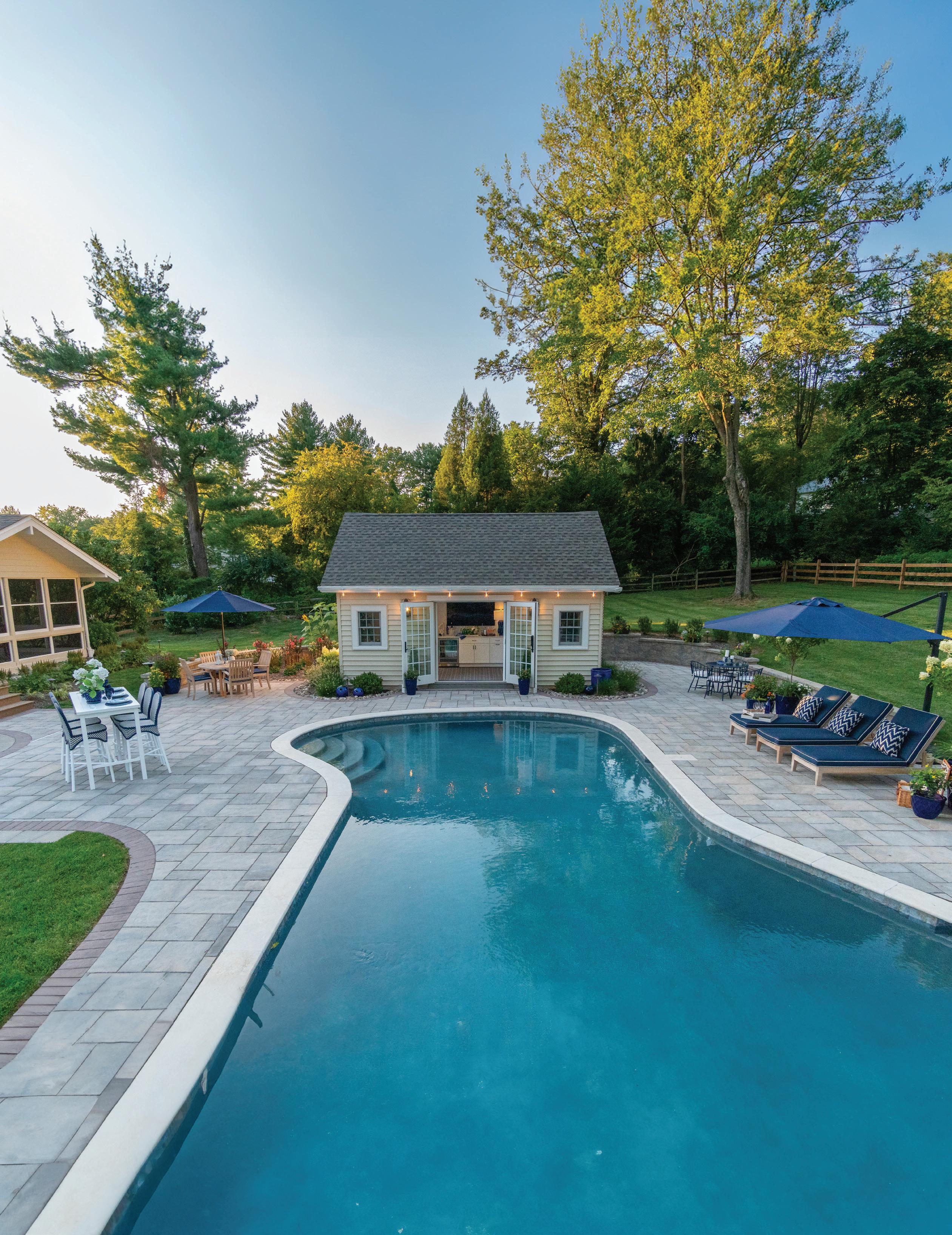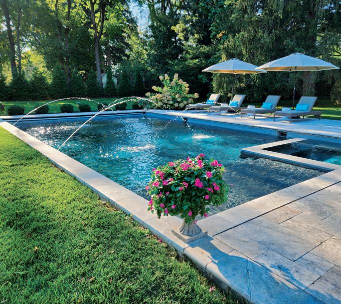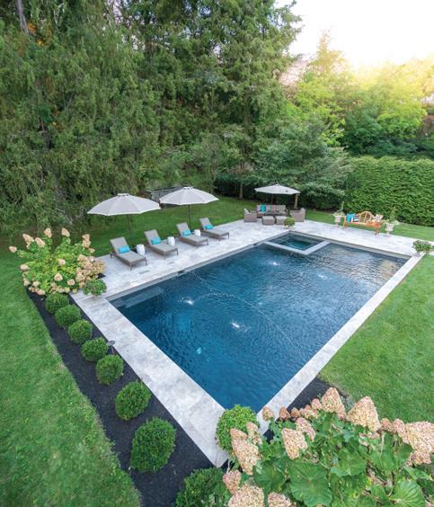 This stunning Gasper-designed pool is surrounded by a natural stone silver travertine patio, providing ample space for relaxation and entertainment. For more inspiring poolside ideas, flip to page 8.
