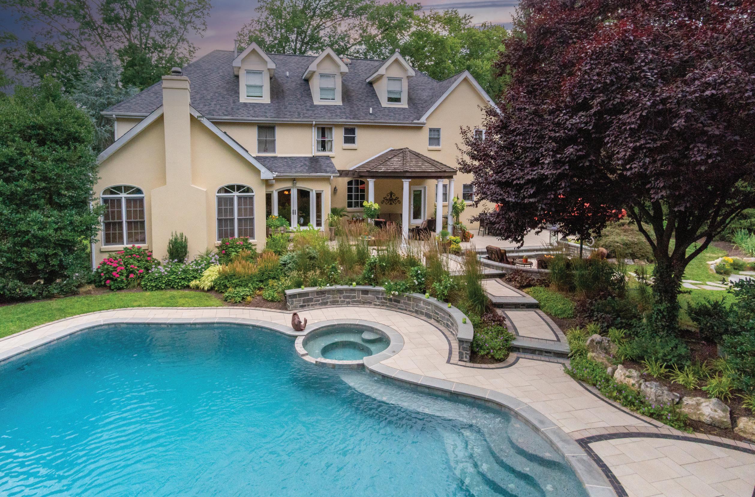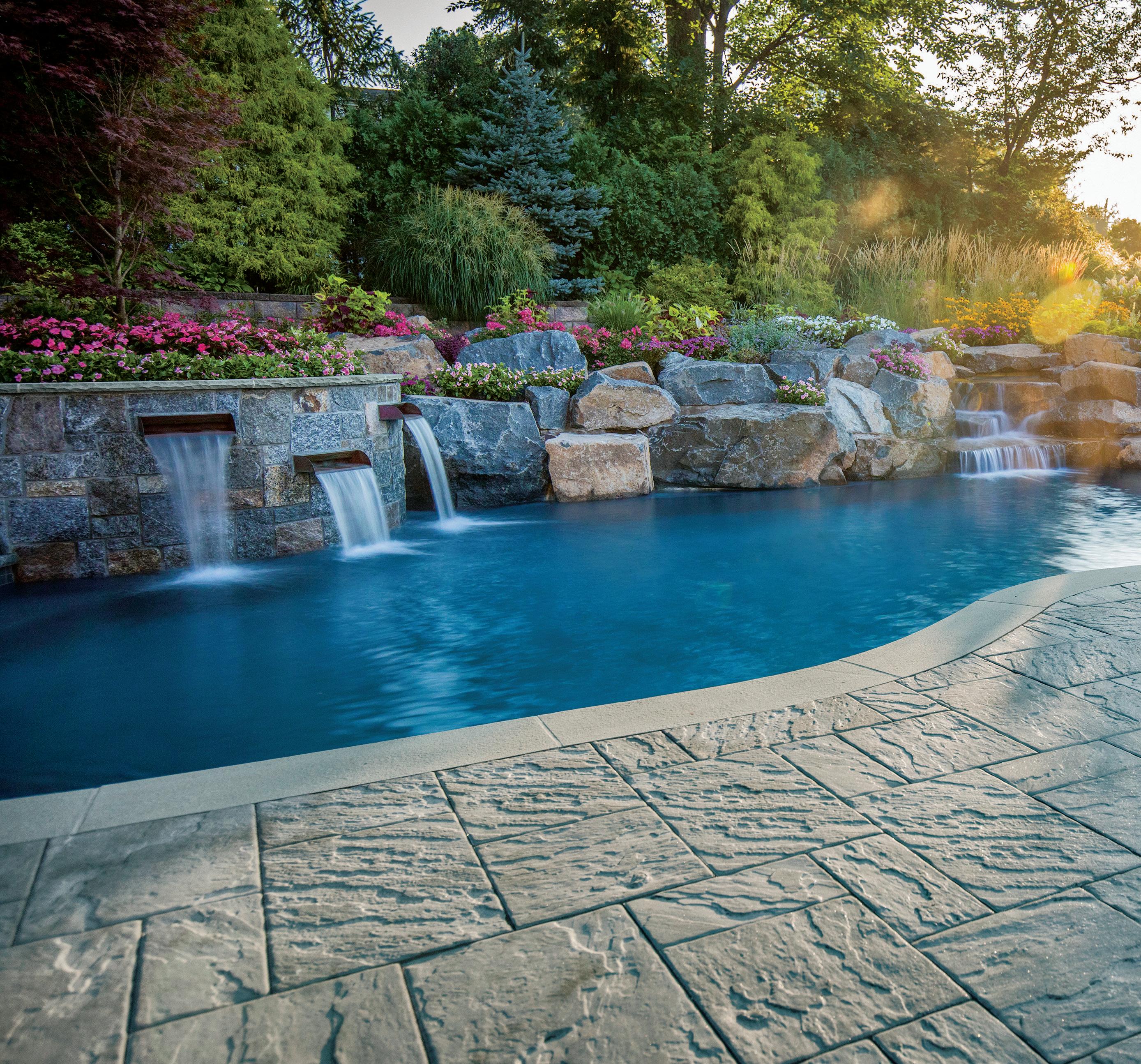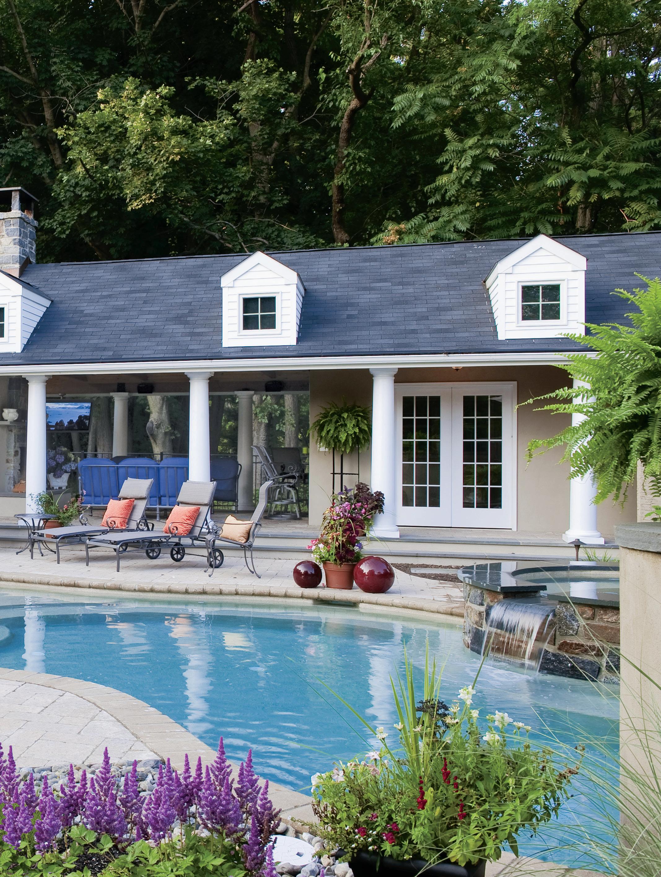 This stunning Gasper-designed pool is surrounded by a natural stone silver travertine patio, providing ample space for relaxation and entertainment. For more inspiring poolside ideas, flip to page 8.