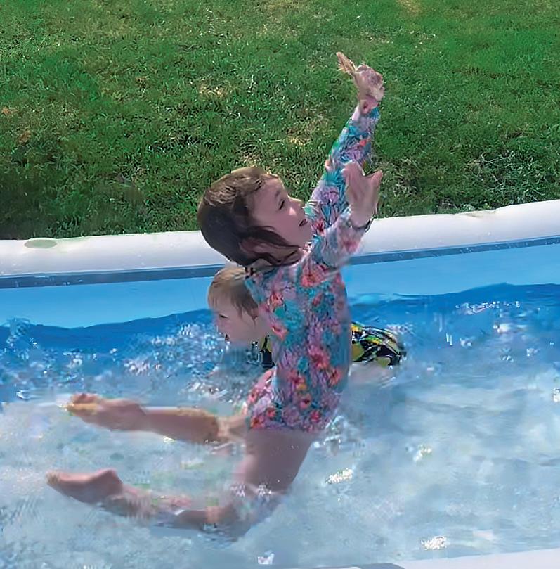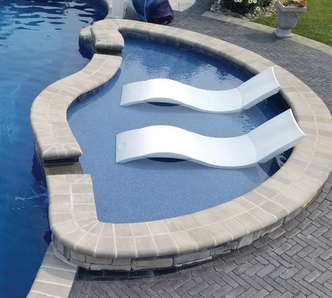 B This sun shelf or splash pool is perfect for sunbathers who want to be partially submerged and partially dry. It also serves as a great play space for kids and dogs.