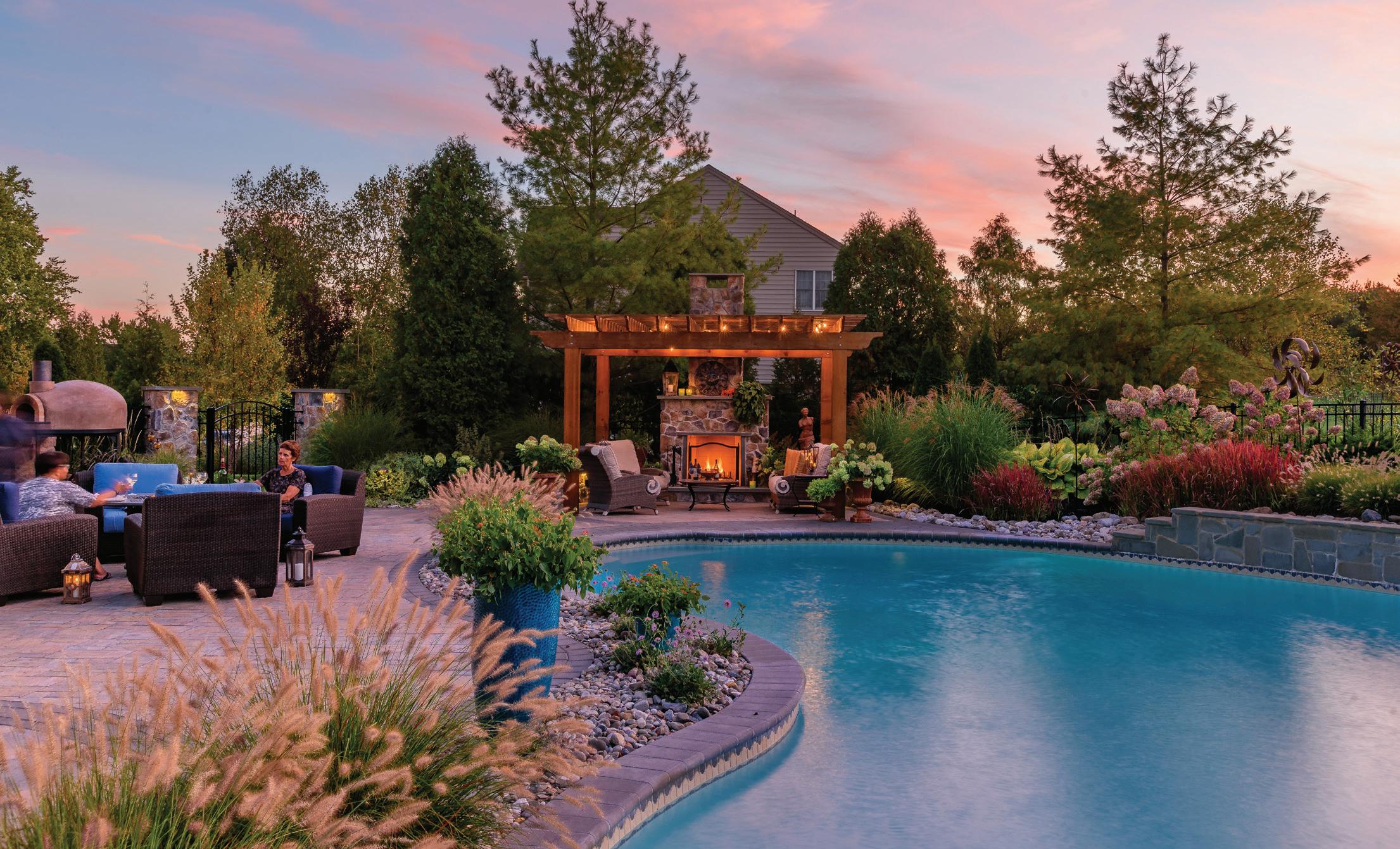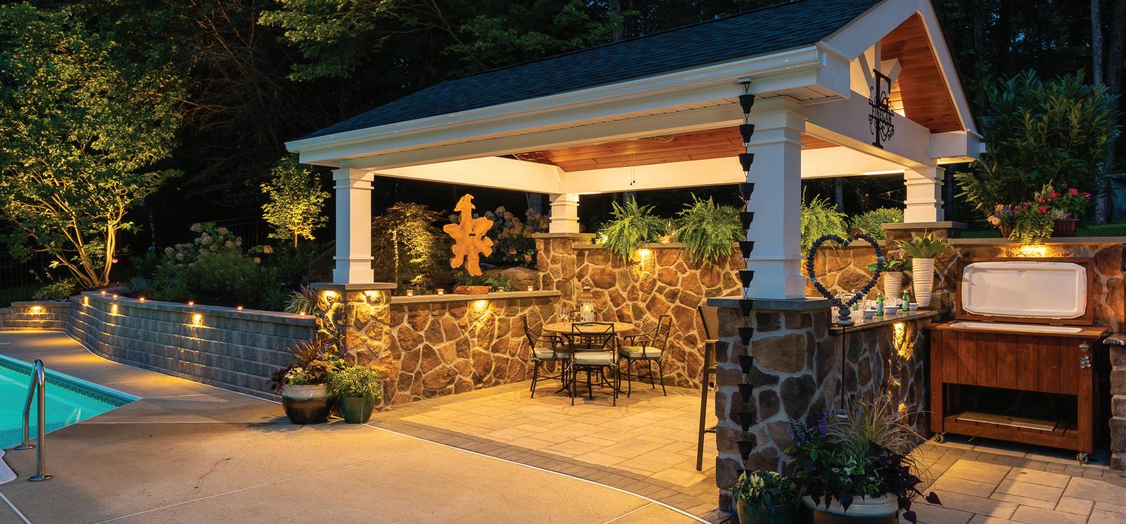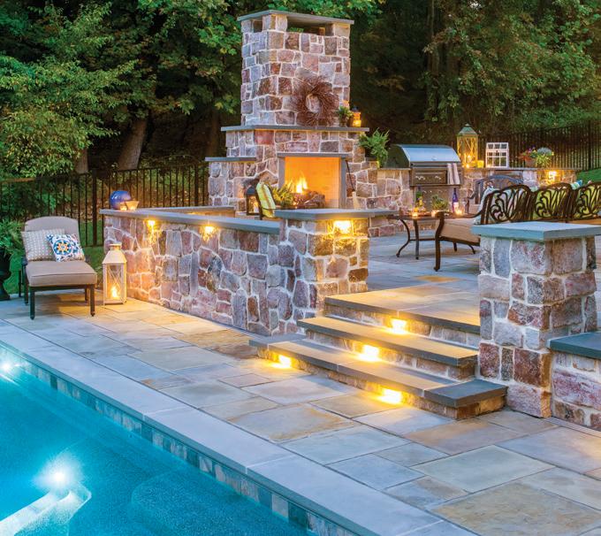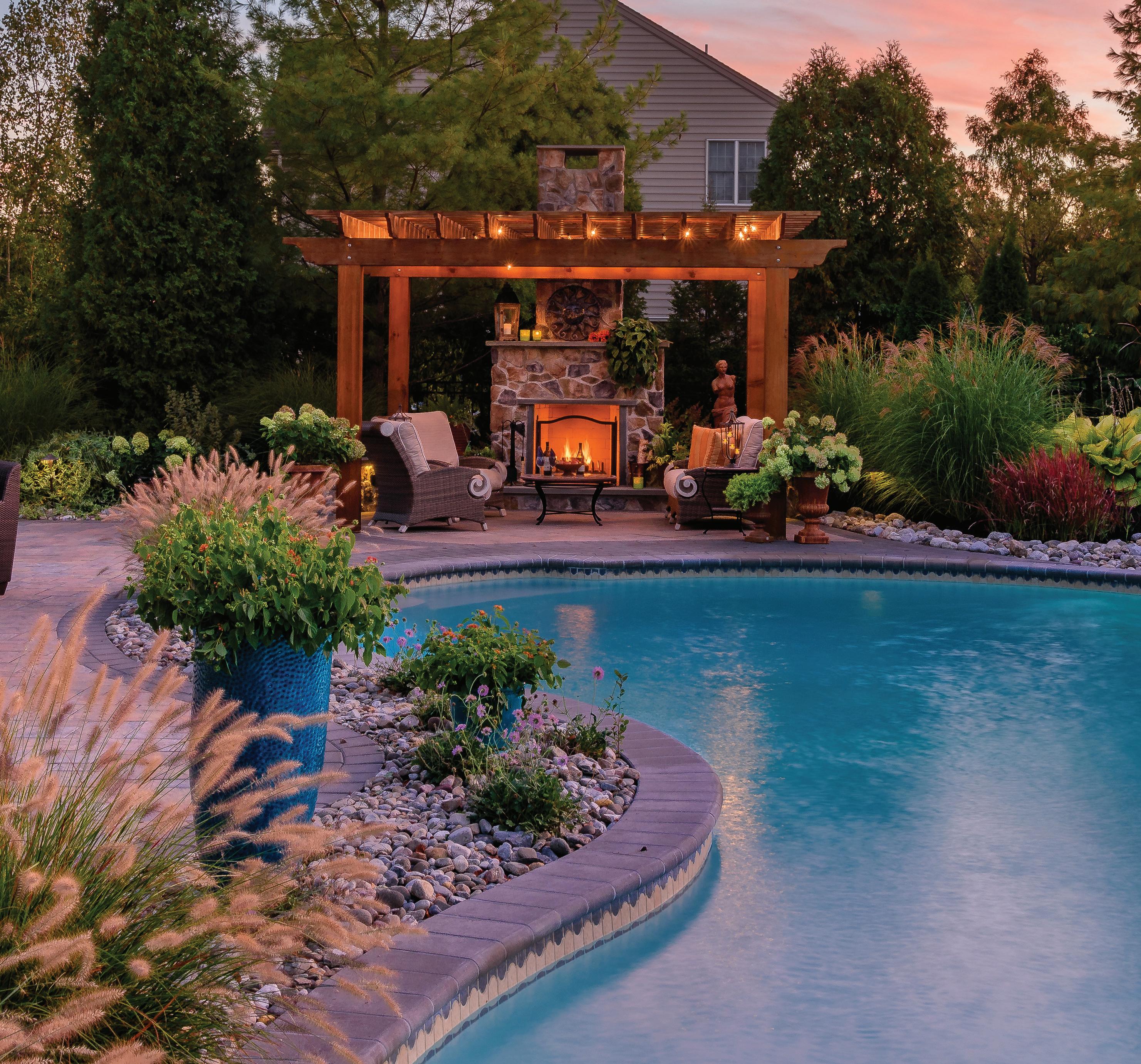 E Don’t forget to include outdoor lighting in your pool and patio areas, as you and your guests are likely to spend time in these spaces well into the evening. Additionally, a masonry fireplace built by Gasper can enhance the ambiance of your backyard with the warm glow of fire light.