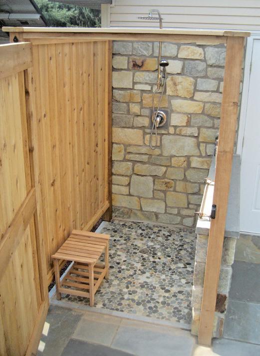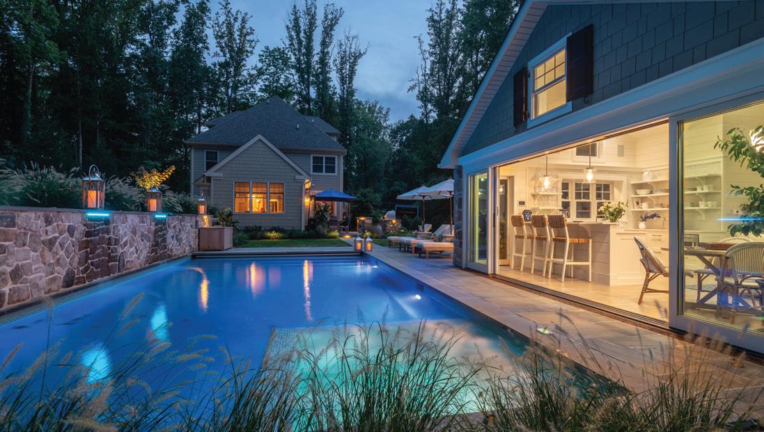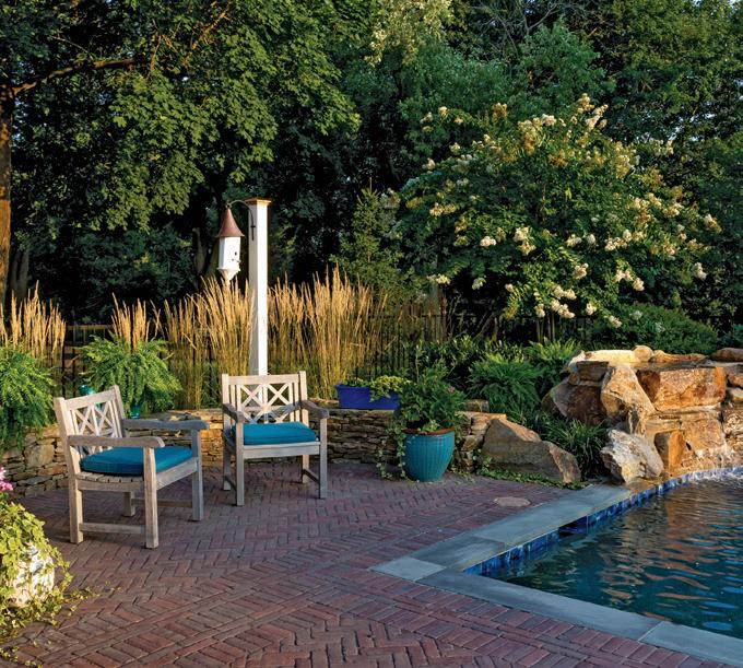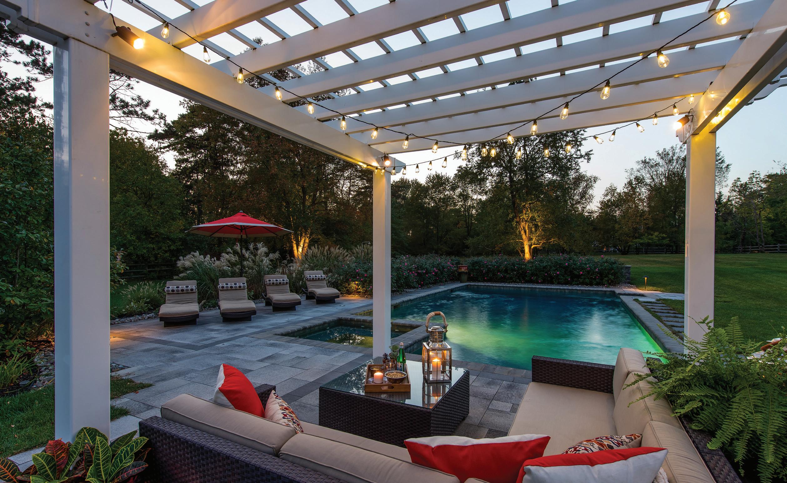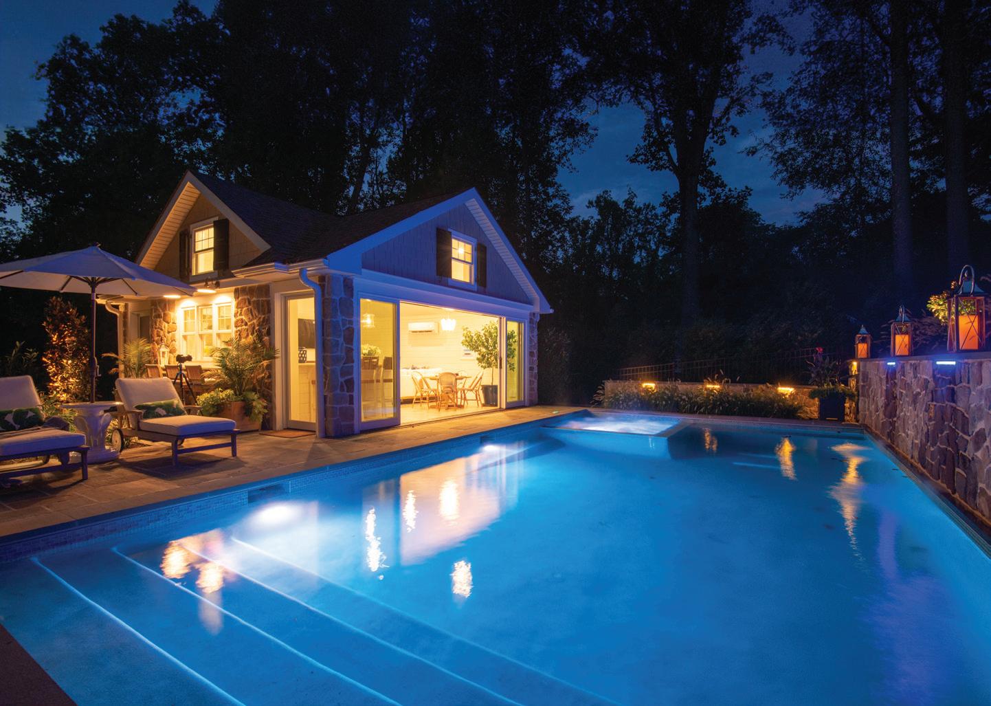 E Don’t forget to include outdoor lighting in your pool and patio areas, as you and your guests are likely to spend time in these spaces well into the evening. Additionally, a masonry fireplace built by Gasper can enhance the ambiance of your backyard with the warm glow of fire light.