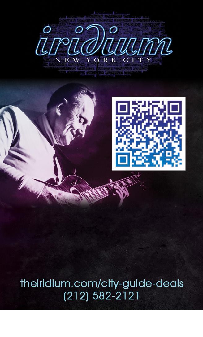 The Iridium is a musical landmark famous for intimate experiences of the best rock, jazz, and blues artists in the world. In addition to its consistent draw of legend ary rock guitarists and jazz and blues musicians, The Iridium regularly showcases next generation talent spanning a variety of genres including folk, indie pop, alt rock, R&B, cabaret, and world music.