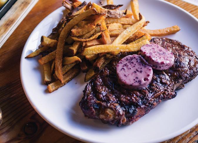 For amazing steak and a taste of New York’s Prohibi tion era past, dowtown is home to Strip House Speak easy. Located next to the original Strip House restau rant, this former bookstore now serves intimate meals and world-class cocktails.