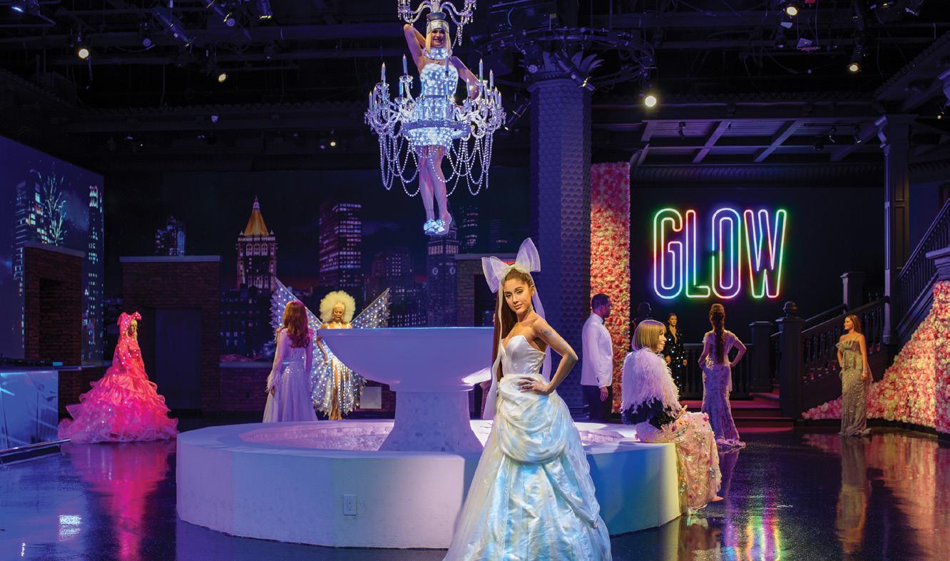 New York City is famous for its gala culture. For the first time ever, you can immerse yourself in the scene right in Times Square. The Madame Tussauds flagship holds 19 celebri ties, including new and never-before-seen wax figures of Ariana Grande and P. Diddy, at the just-opened Glow Gala (above). Many of the figures, including RuPaul, Lady Gaga, and Katy Perry, are wearing illuminated, show-stopping looks inspired by New York’s legend ary Met Gala. The exhibition comes to life with state-of-the-art projection technology and dramatic lighting, choreographed to a New York City-centric soundtrack. Floral walls and neon art provide a perfect backdrop for photo ops. 234 W. 42nd St. (btw. Seventh & Eighth Aves.), nycwax.com