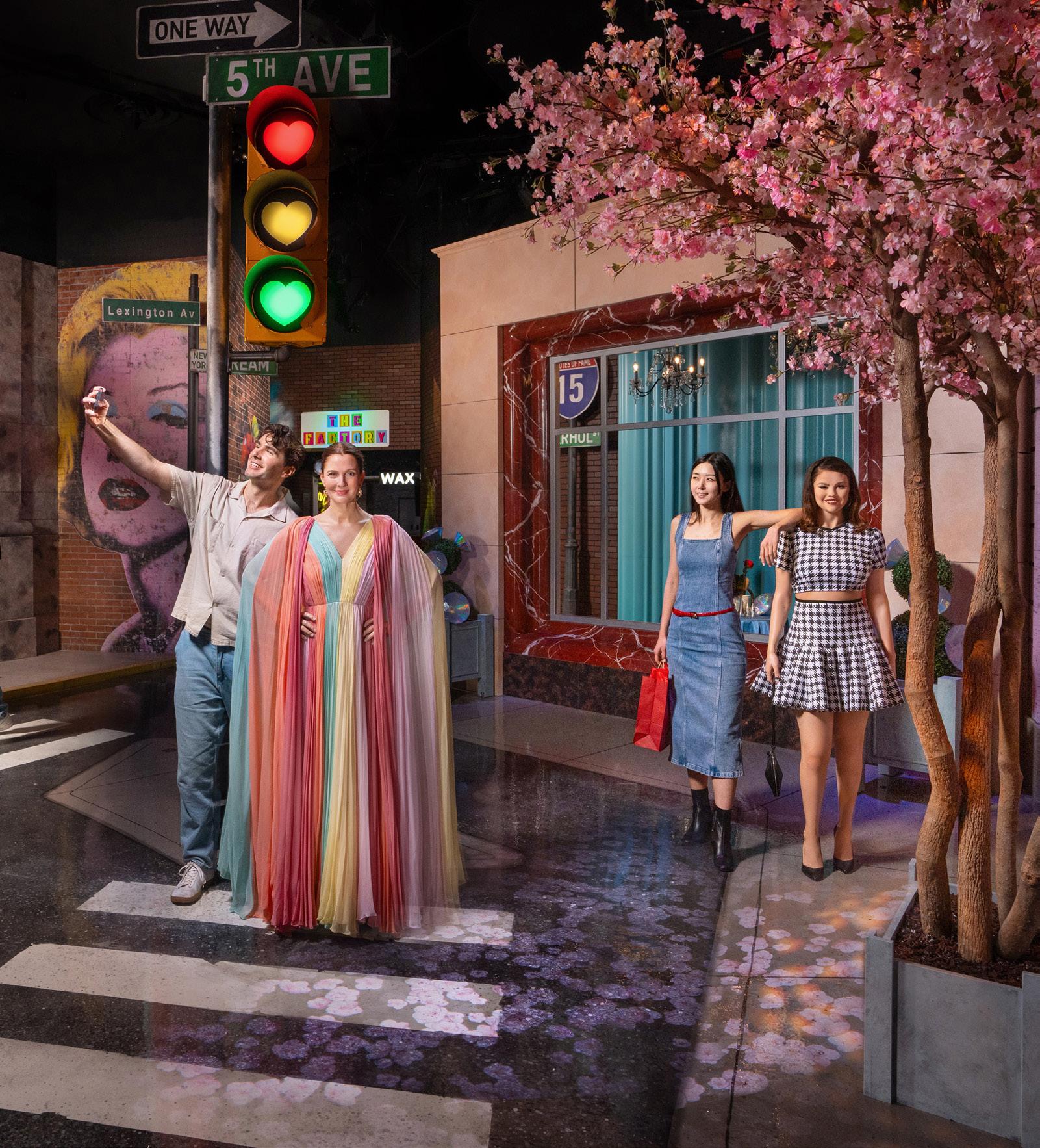 Above: One World Observatory is a great destination for an evening visit, just as the city’s lights flicker on. Below: Madame Tussauds is the only museum that lets you get up close and personal with your favorite stars, like Selena Gomez shown here in the new experience “Seasons of New York City.”