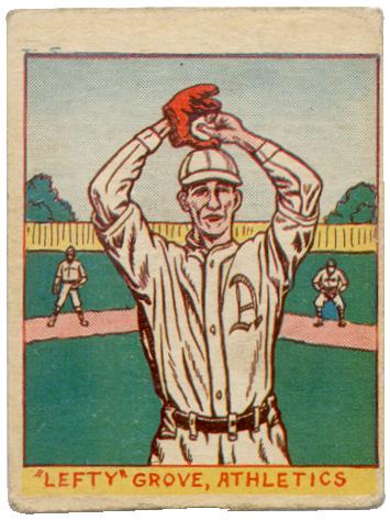 Hunky Shaw, San Francisco, Pacific Coast League, from the Obak Baseball Players set (T212), issued by the American Tobacco Company to promote Obak Mouthpiece Cigarettes; Robert “Lefty” Grove, 1933 R337 Eclipse Import Hand Cut.
