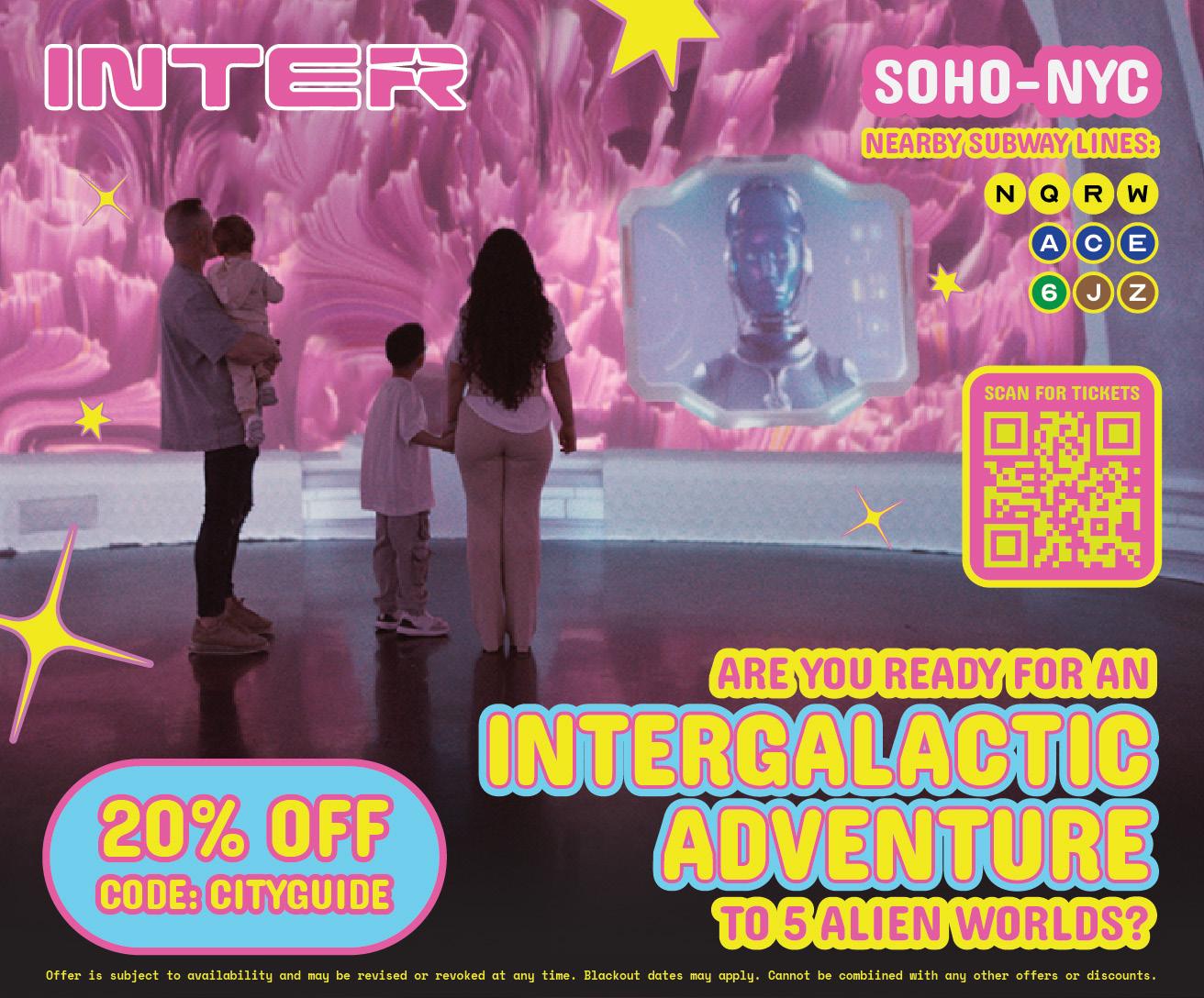 Embark on a journey into the unknown at INTER, a new immersive experience in SoHo that merges art, science, and imagination. Explore 10 captivating exhibits that creatively combine light, sound, and digital projection. Climb through cosmic terrain, wander alien worlds, and confront the mysteries of the universe.