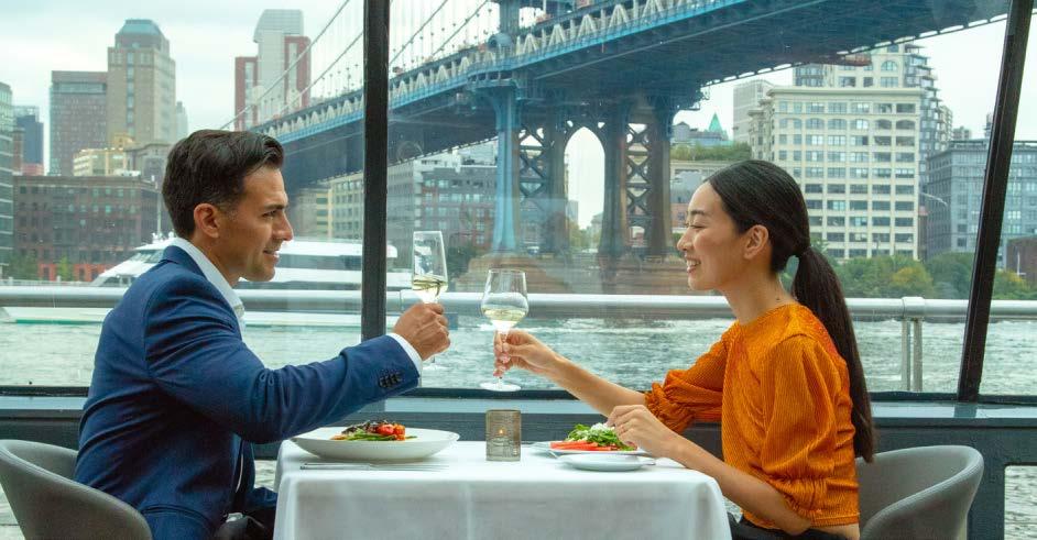 New York City grew so fast thanks to its access to shipping and its waterways remain vibrant parts of city life. The views back to skylines and landmarks are even more impressive. City Cruises offers great ways to dine along the skyline. For a refined experience, book a Premier Brunch, Lunch, or Dinner Cruise on the all-glass, European-inspired Bateaux New York and enjoy chefprepared, plated dining, live entertainment, signature cocktails, and the city’s most impressive views. Or enjoy an upbeat buffet experience with DJ music and views from the open air roof deck on the Spirit of New York Circle Line is celebrating 80 years showing off the city’s landmarks. They’ve got the only cruise that goes all around Manhattan, the Best of NYC Cruise. One trip highlights five boroughs, three rivers, and more than 20 bridges on the way to 130 New York City sights. (Take a sightseeing cruise and get $10 off with the coupon on page 13.) Hold on tight for the BEAST, Circle Line’s thrilling speedboat ride that lets you see NYC at maximum speed. As New York waterways get healthy, bottlenose dolphins, seals, sea turtles, and even whales are paying visits to the city. You can check out all of