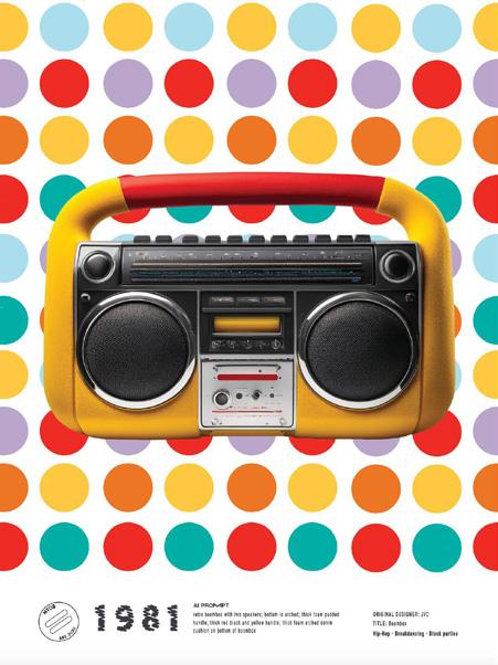 1. Norman Teague (American, born 1968). Left: Dizzie. 2024. Digital image file. 40 × 30” (101.6 × 76.2 cm). Courtesy of Norman Teague Design Studios. Center: MoColor. 2024. Digital image. Courtesy Norman Teague Design Studios. Booming Riffs. 2024. Digital image. 40 × 30” (101.6 × 76.2 cm).Courtesy of Norman Teague Design Studios.