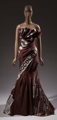 5. L to R, Jeremy Scott for Moschino, evening gown, Fall 2014; Chanel, shoes, Cruise 2009. Gift of CHANEL; Pair of fetish boots, European, c. 1895. Francesca Galloway, London. Image © Francesca Galloway (Photograph Katrina Lawson Johnston); Jean Paul Gaultier, dress, Fall 1984; Larry Shox, Man’s suit, 1985. Unless otherwise noted all images are © The Museum at FIT.